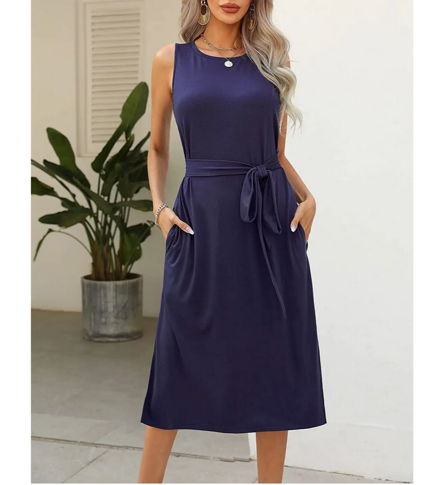 Sleeveless Belted Midi T-Shirt Dress