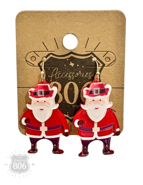 Rhinestone Resin Santa Claus Earrings in Red & White