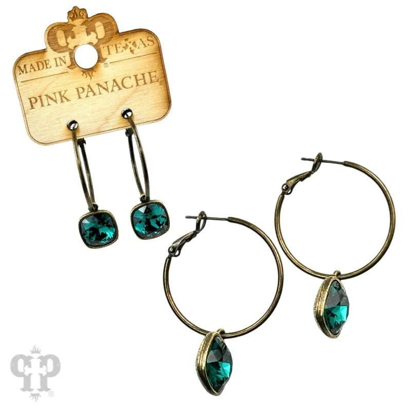 Square Austrian Crystal Hoop Earring - Emerald