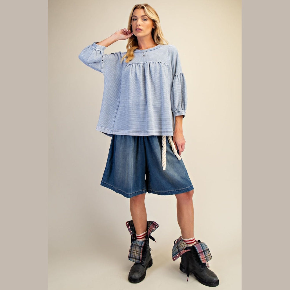 Textured Knit Mineral Washed Babydoll Top