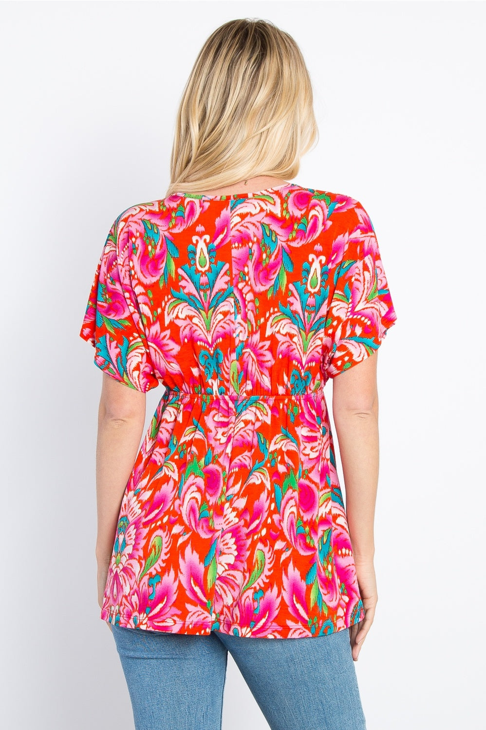 Floral Patterned Short Sleeve Babydoll Tomato Red