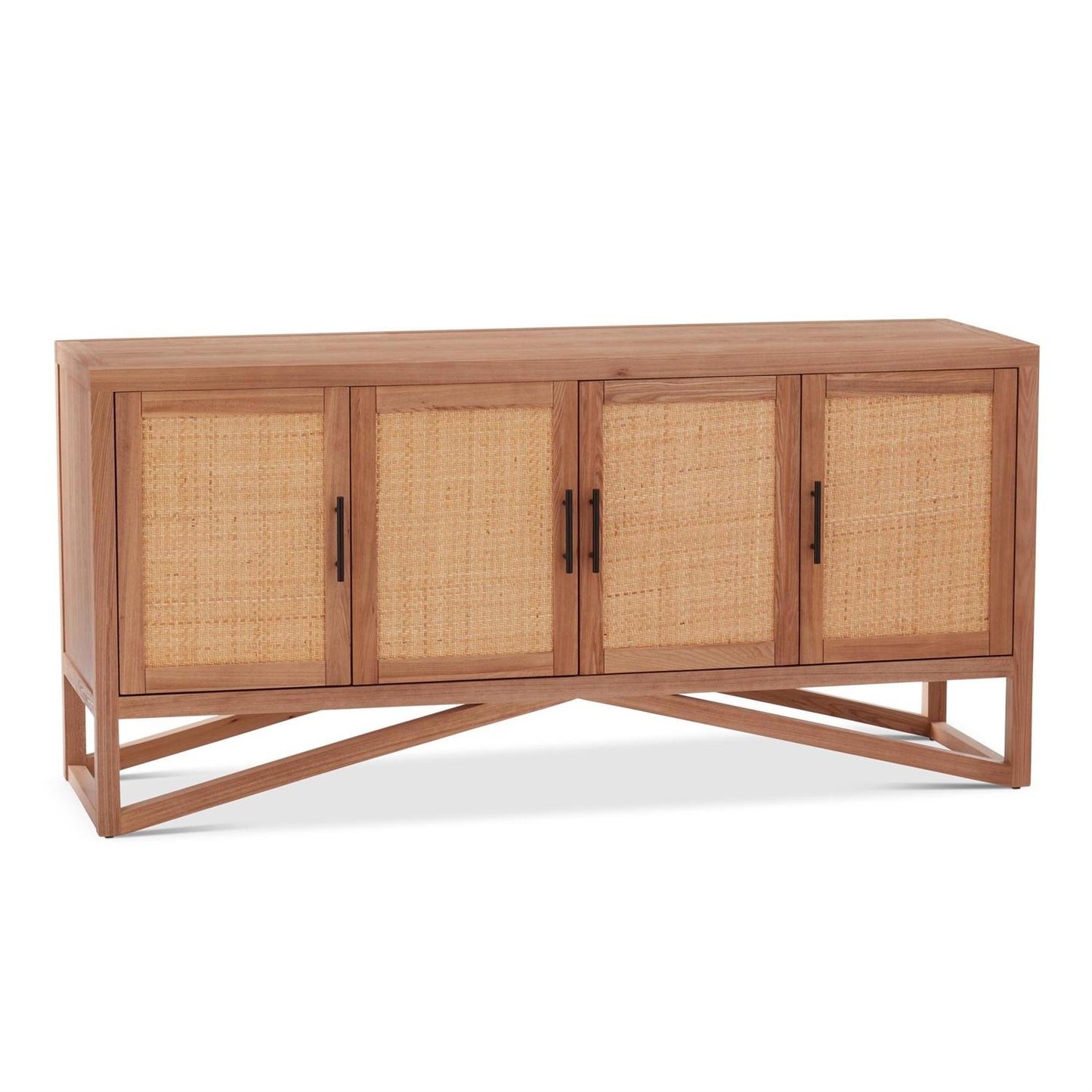 Natural Elm Wood & Woven Cane 4 Door Sideboard