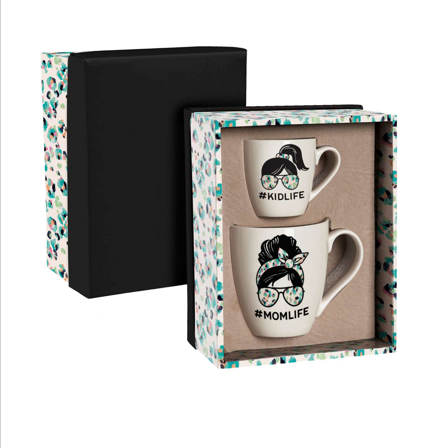 Mommy and Me Ceramic Cup Gift Set, 17 oz. & 7 oz, Mom Life/Kid Life