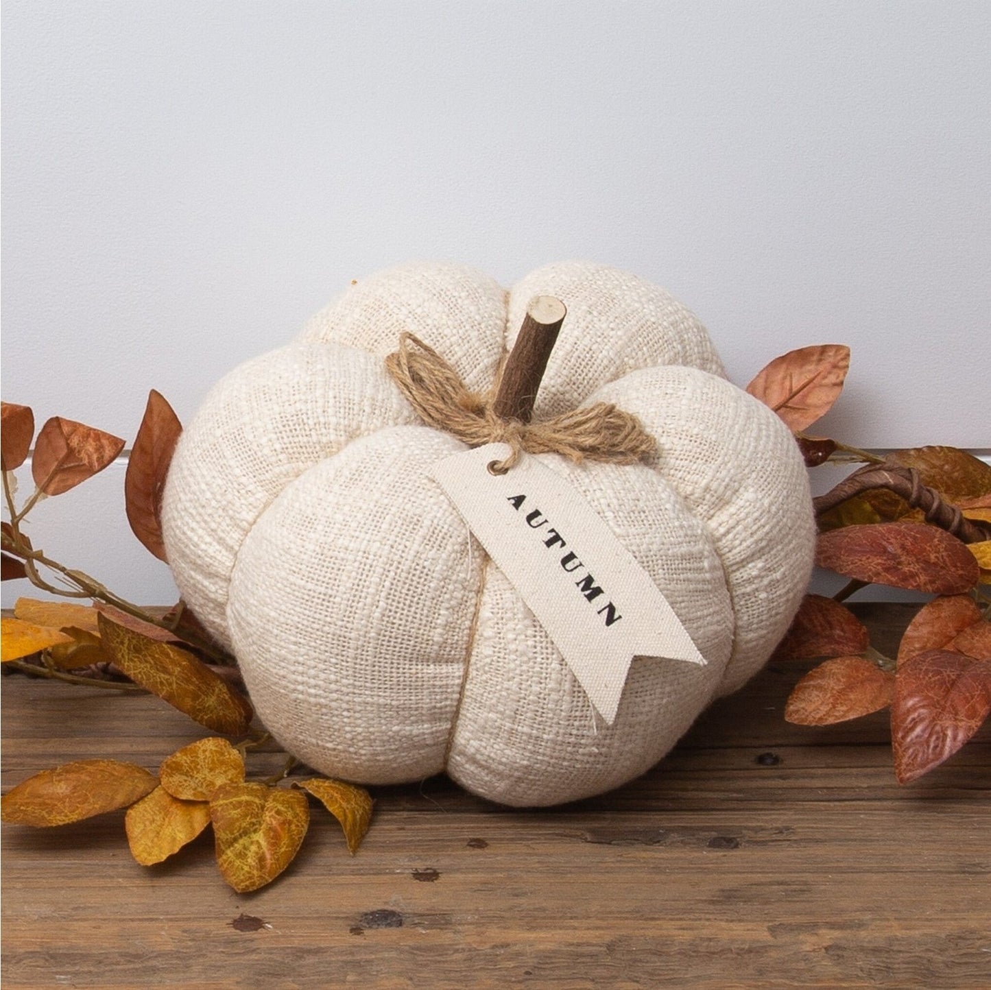 Cream Knit Pumpkin with Fabric Tag - Fall