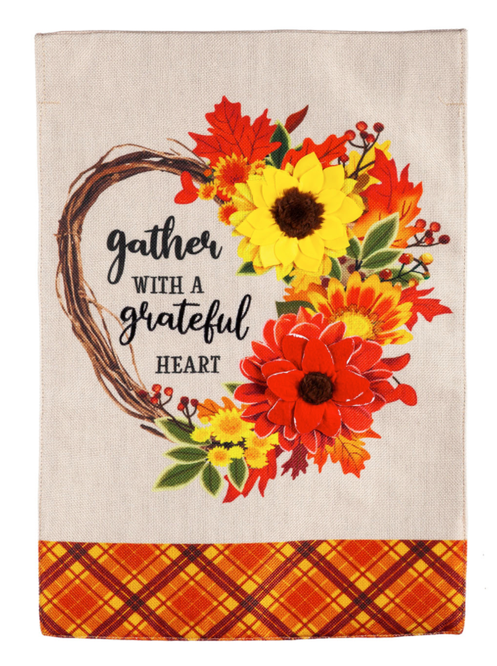 Add Gather with a Grateful Heart House Burlap Flag to the cart