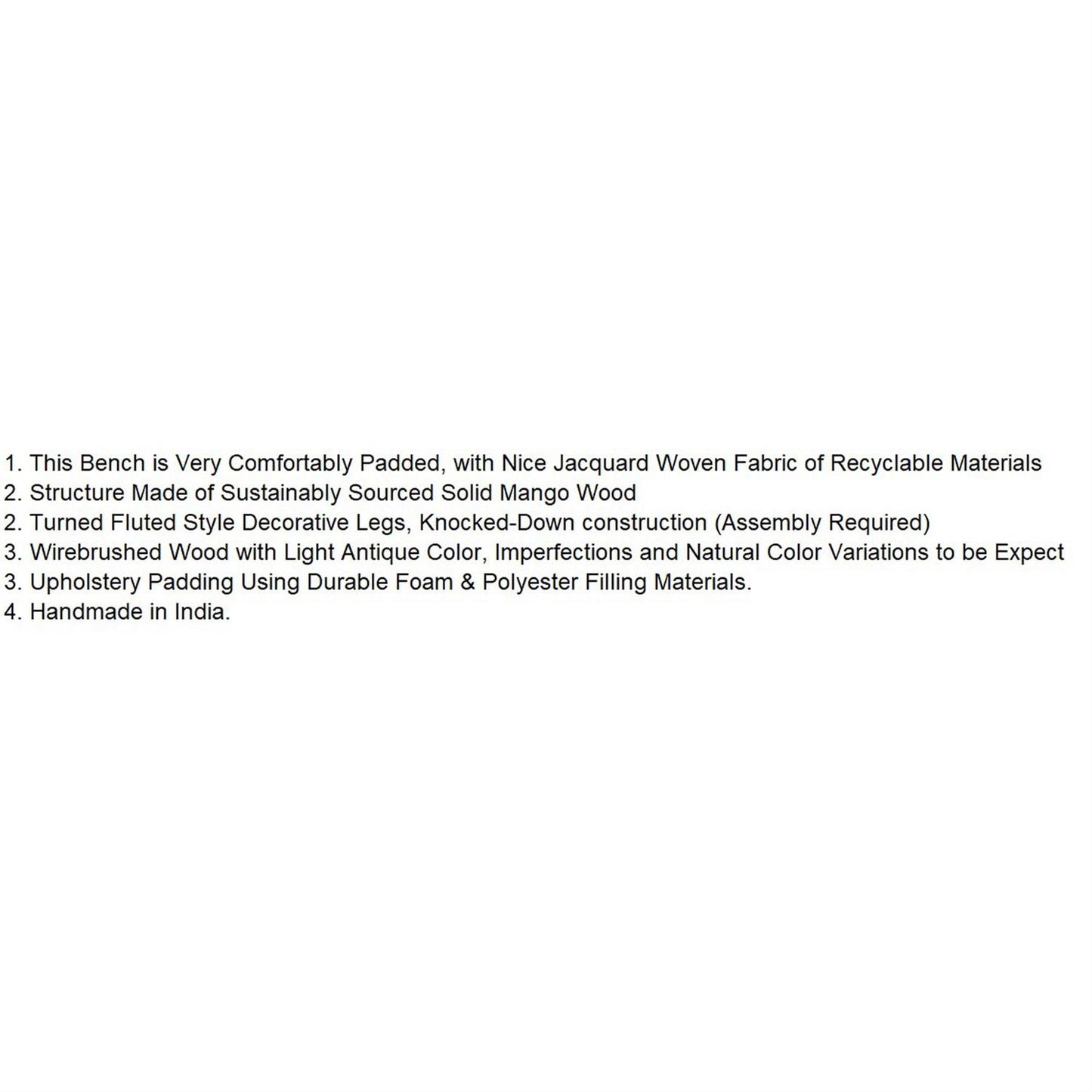 Elevate your living space with this 46.25-inch cream and white jacquard upholstered bench, crafted from durable mango wood. Its elegant design and soft upholstery provide both comfort and style, making it perfect for entryways, bedrooms, or seating areas. The sturdy mango wood frame ensures lasting quality, while the neutral tones blend seamlessly with any décor. Add a touch of sophistication and practical seating to your home with this beautifully crafted bench.