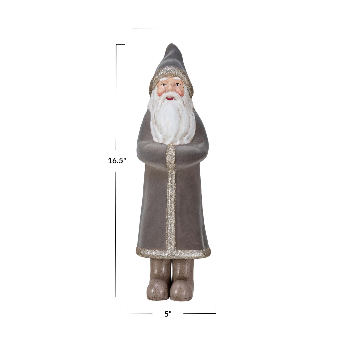 Enhance your holiday decor with the understated elegance of our Flocked Santa with Silver Glitter. Meticulously crafted with a soft, velvety flocked finish and delicately accented by subtle silver glitter, this piece exudes refined seasonal charm. Ideal for sophisticated mantel displays or tasteful table centerpieces, it adds a graceful sparkle that complements both classic and contemporary interiors. Celebrate the season with timeless style and quiet luxury. Dimensions: 17"H x 4.5"W