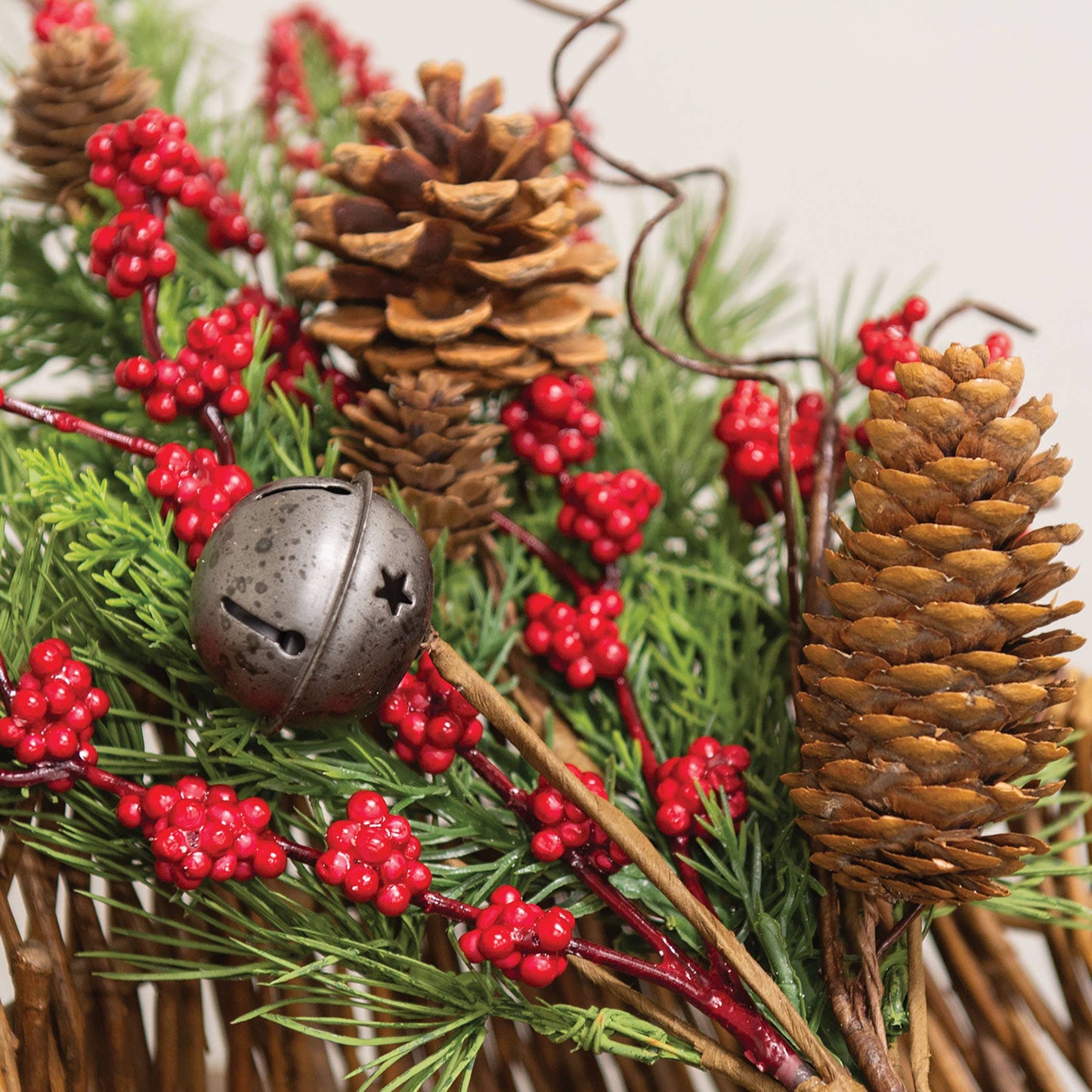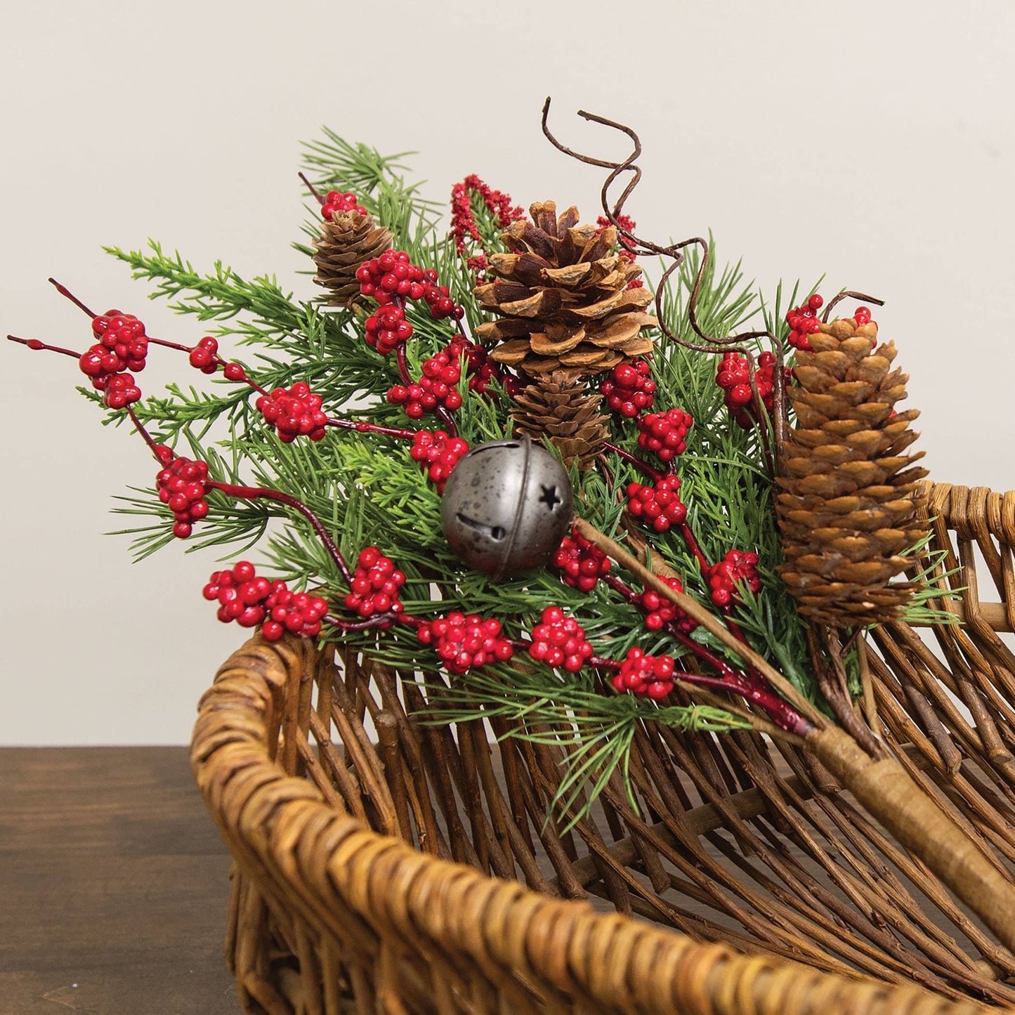 This beautifully crafted faux spray features a lush blend of pine greenery, vibrant red pepperberries, and natural accents for a rich, seasonal look.