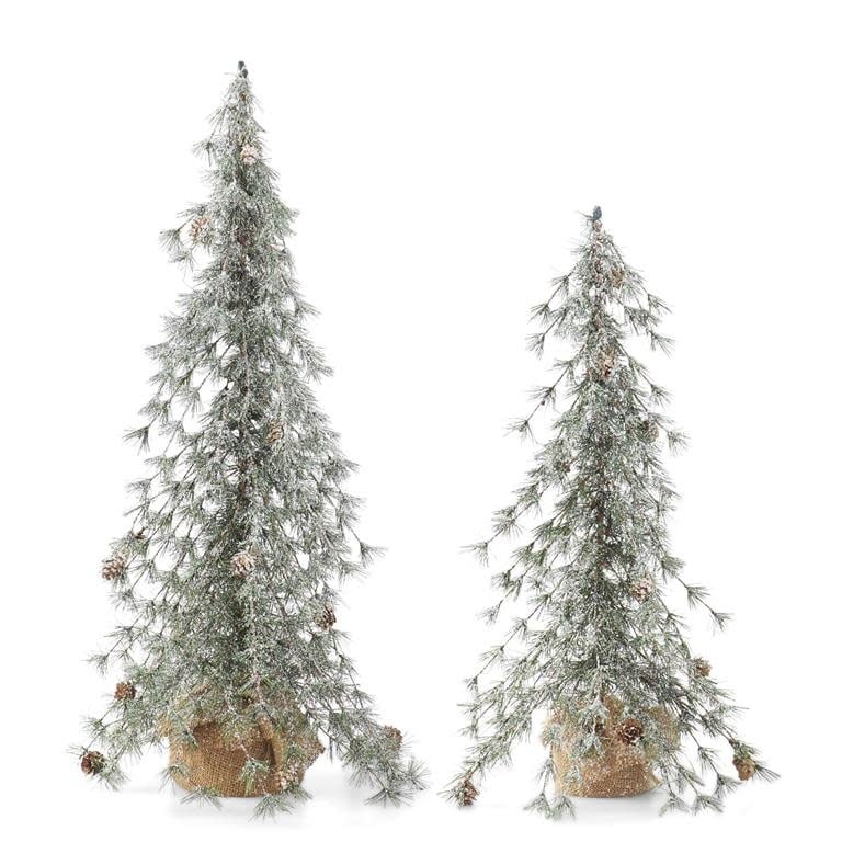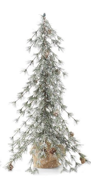 Small Glittered Snowy Pine Tree in Burlap Pot