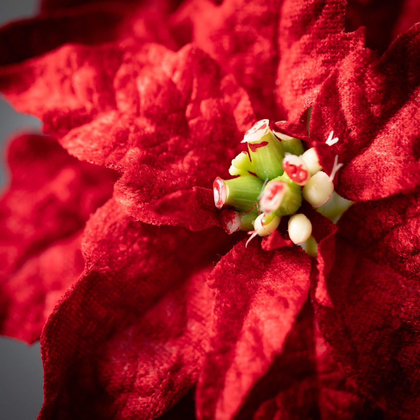Add a little bit of color to your Holiday decorating with the quintessential Christmas flower. This versatile poinsettia stem measures 12" in height and is a fabulous addition to a mantel or tabletop.