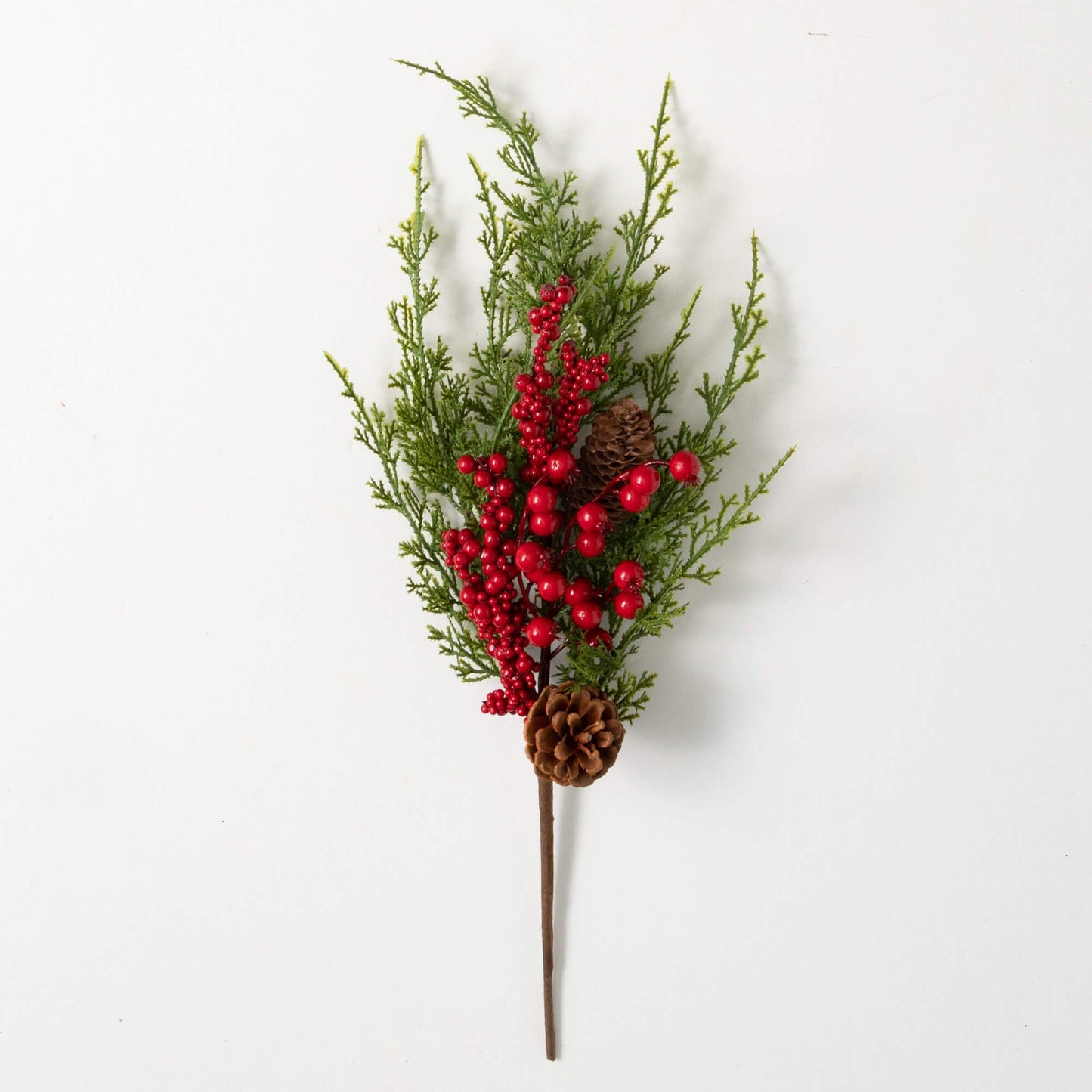 18 Inch Real Touch Boxwood and Mixed Pine Pick