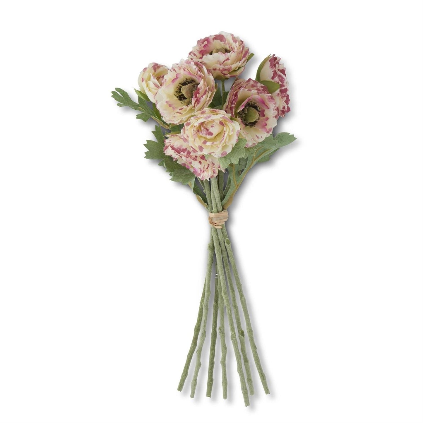 Add White With Pink Ranunculus Bundle With Flocked Stem to the cart