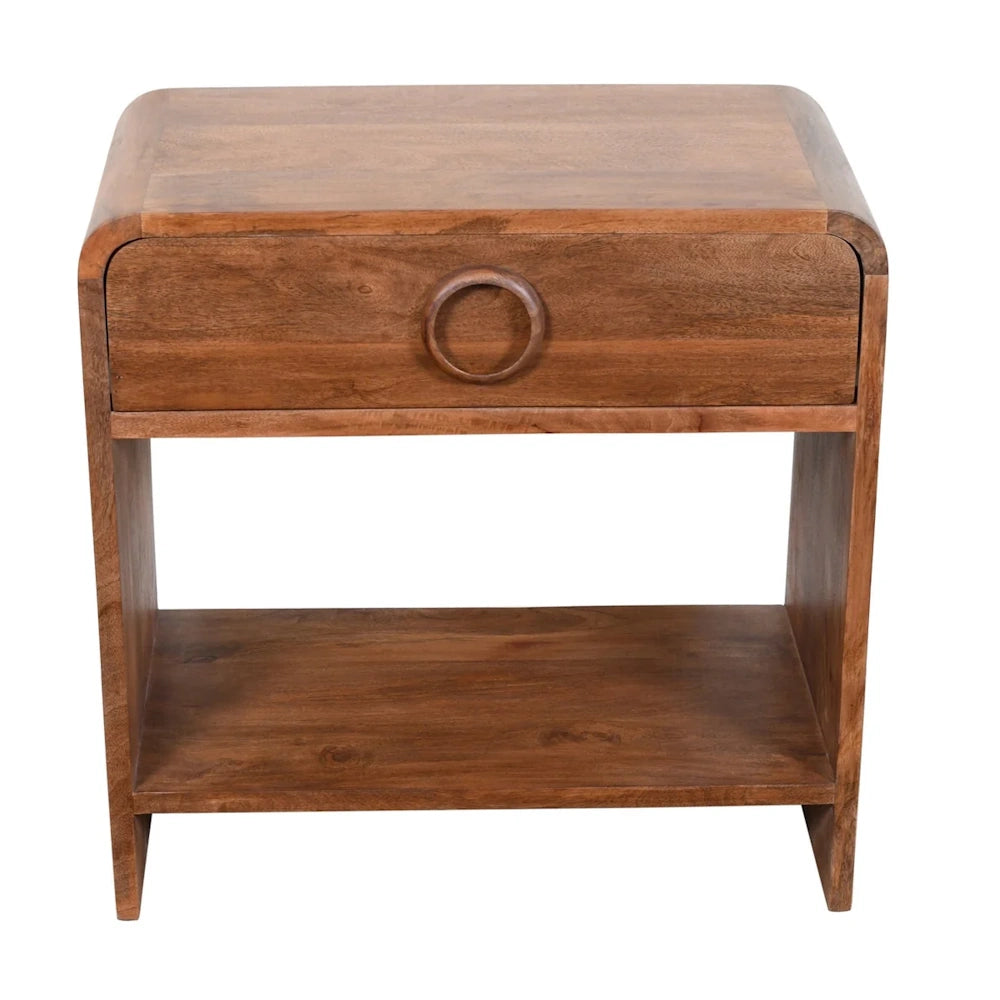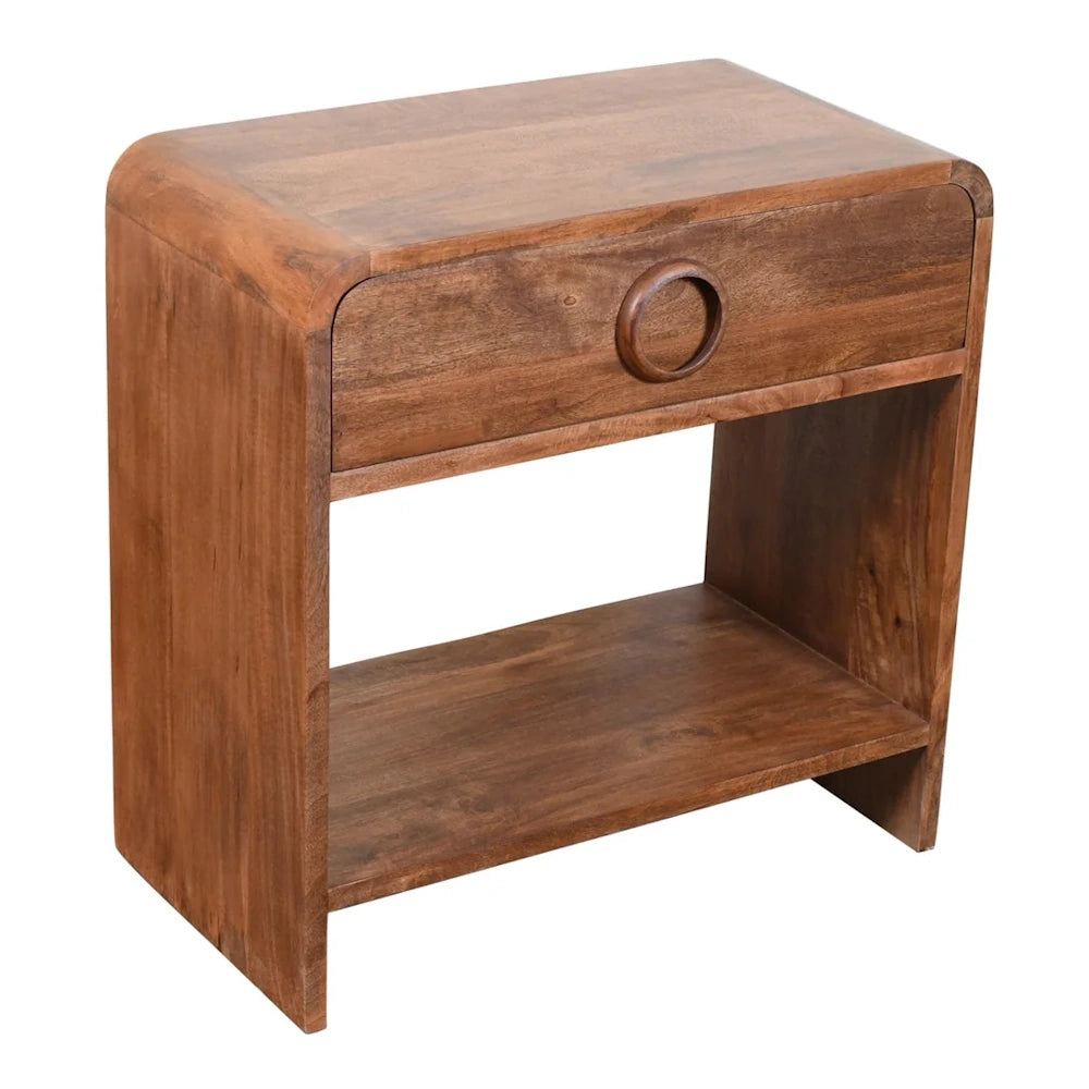 Blending mid-century modern style with vintage-inspired charm, this nightstand is expertly crafted from durable mango wood and finished in a rich, warm brown.