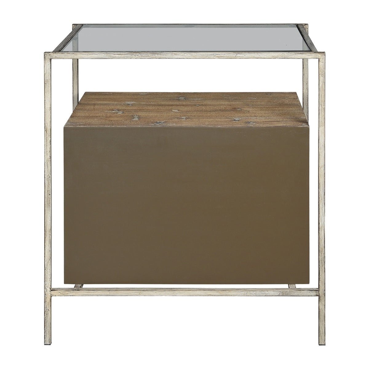 An eye catching mix of metal, glass, and wood, this chest adds visual appeal along with usefulness...