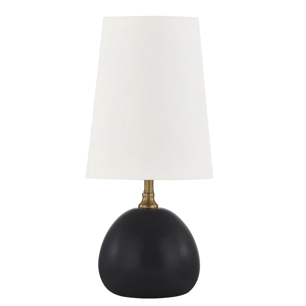 The Hopkins Table Lamp adds a touch of character and charm to any space with its black ceramic base and contrasting white shade.