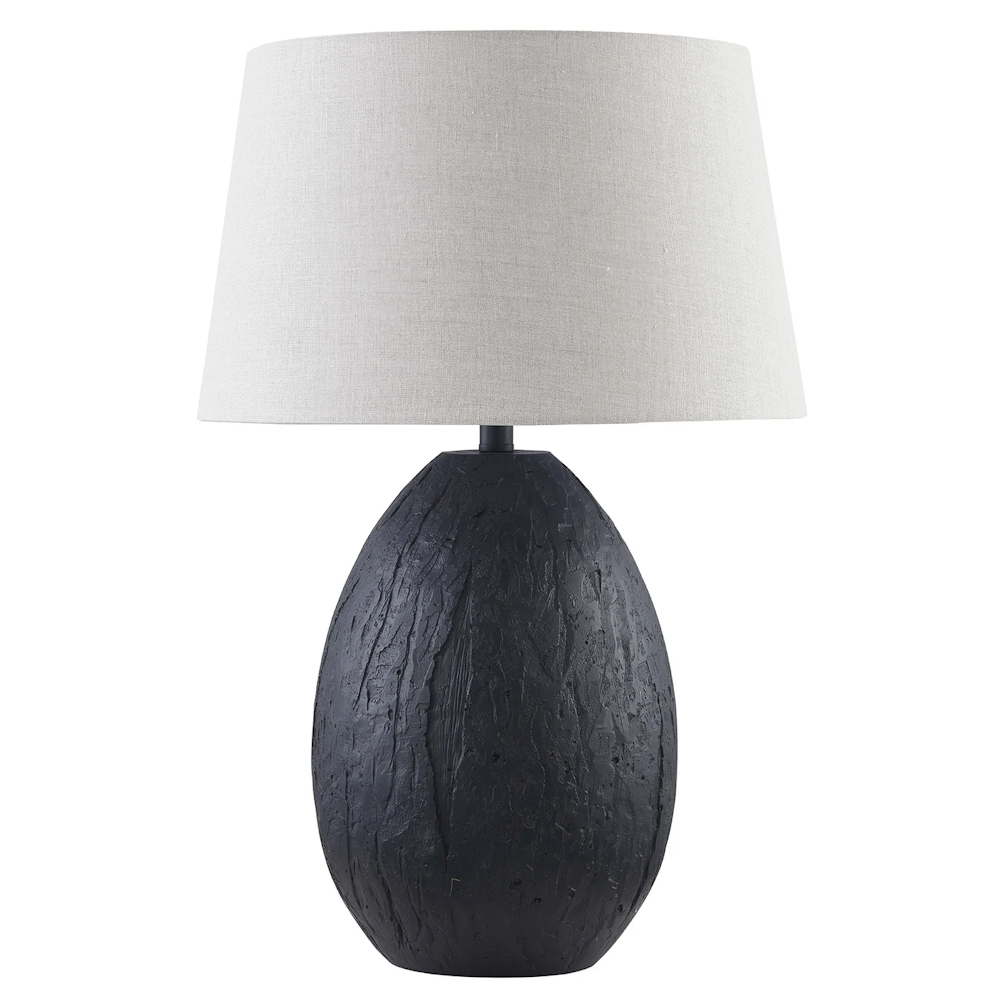 Featuring a sculpted base with an antique-inspired finish and a soft, neutral shade, this lamp adds instant character to living rooms, bedrooms, entry tables, and home offices.