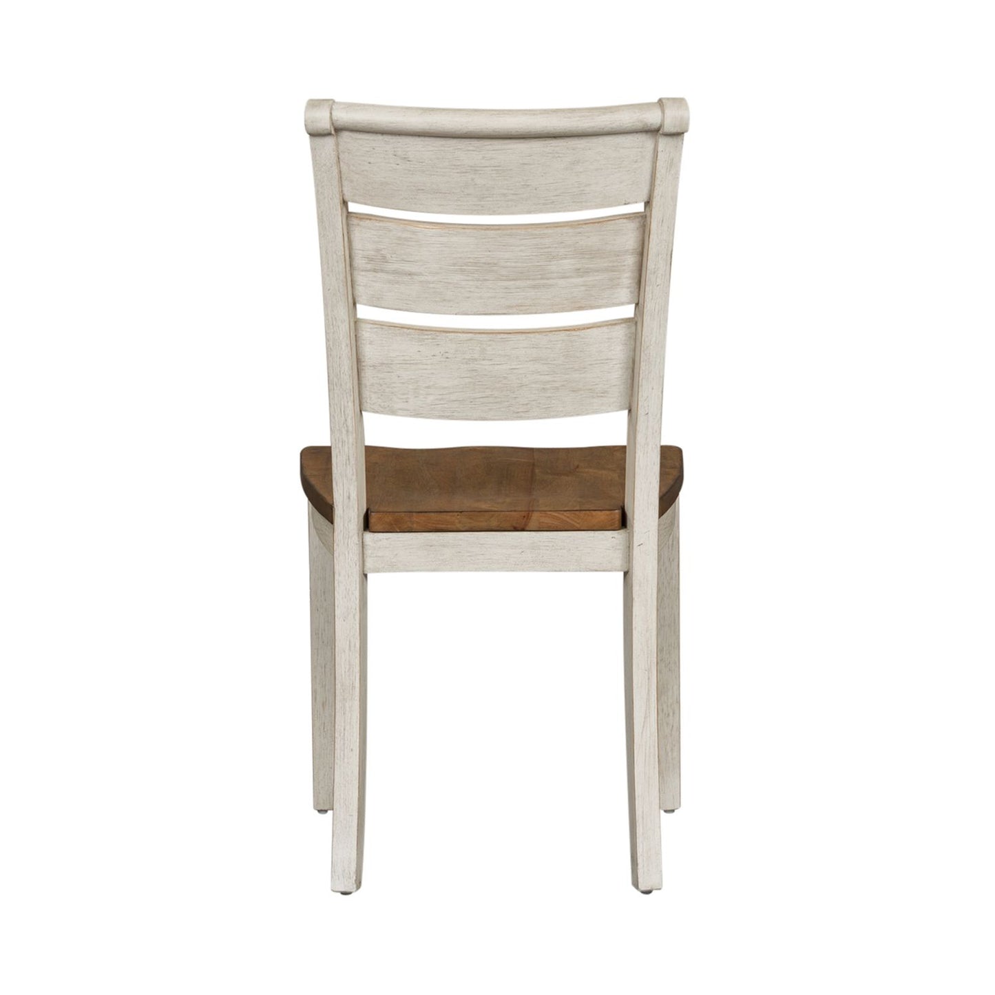 Crafted of rubberwood solids, this piece features a timeless antique white finish with a chestnut seat, wooden shaped seat for added comfort, nylon chair glides to protect your flooring, and is anchored by beautifully tapered legs. This piece offers a look that compliments today's homes with style uncompromised and comfort abound.