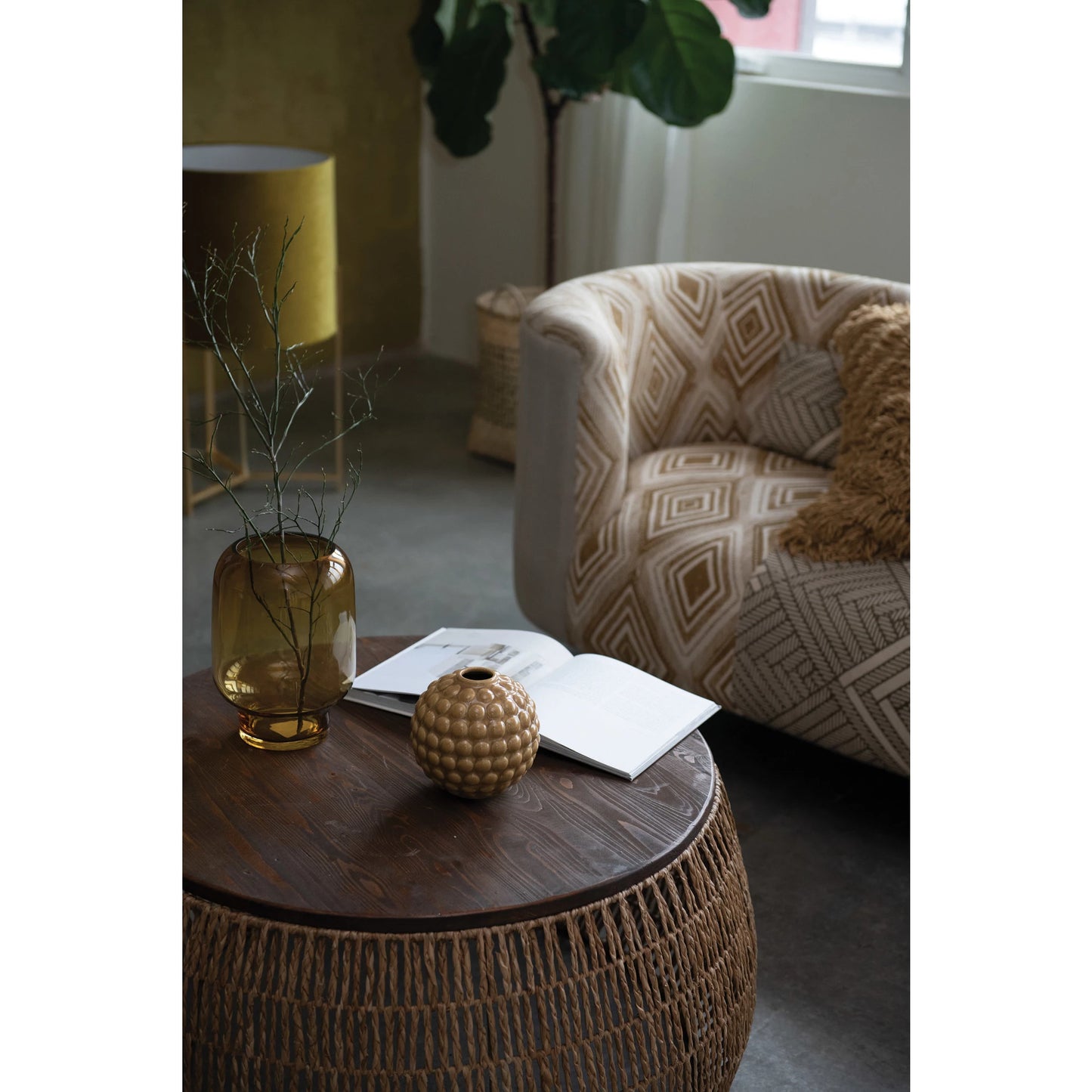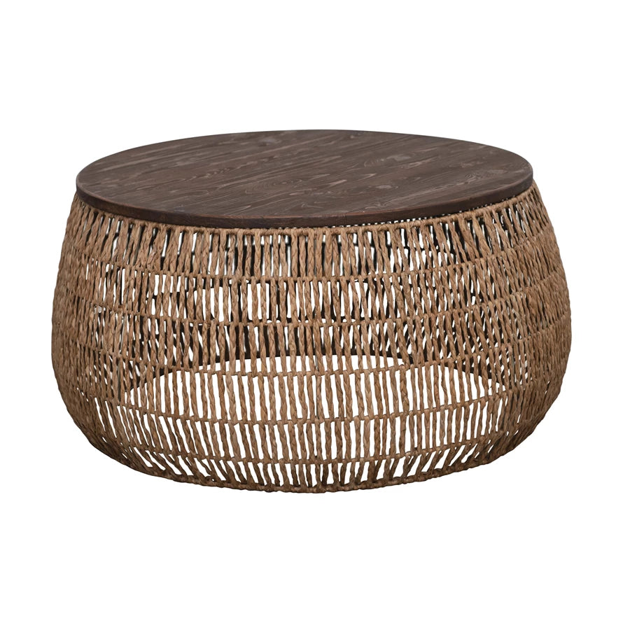 Hand-Woven Bankuan Coffee Table w/ Recycled Pine Wood Top, Natural & Stained Finish.