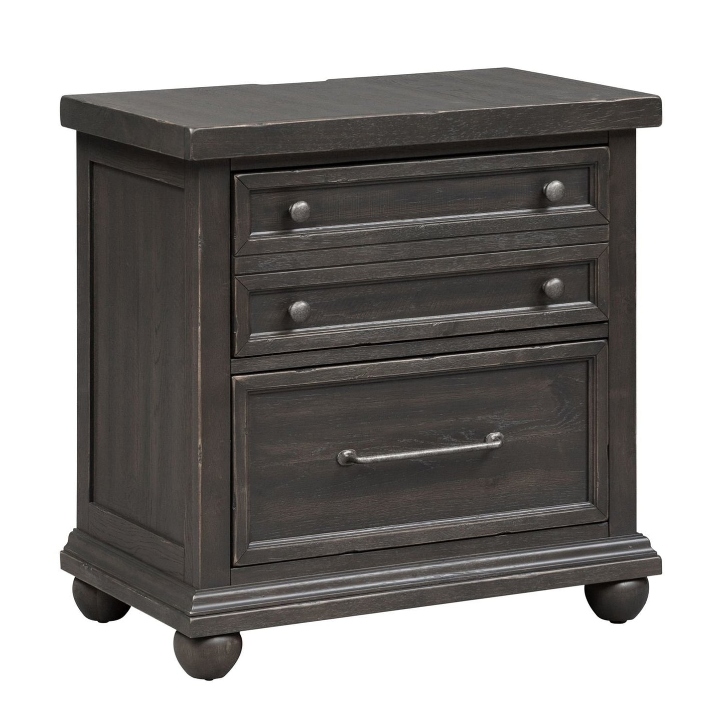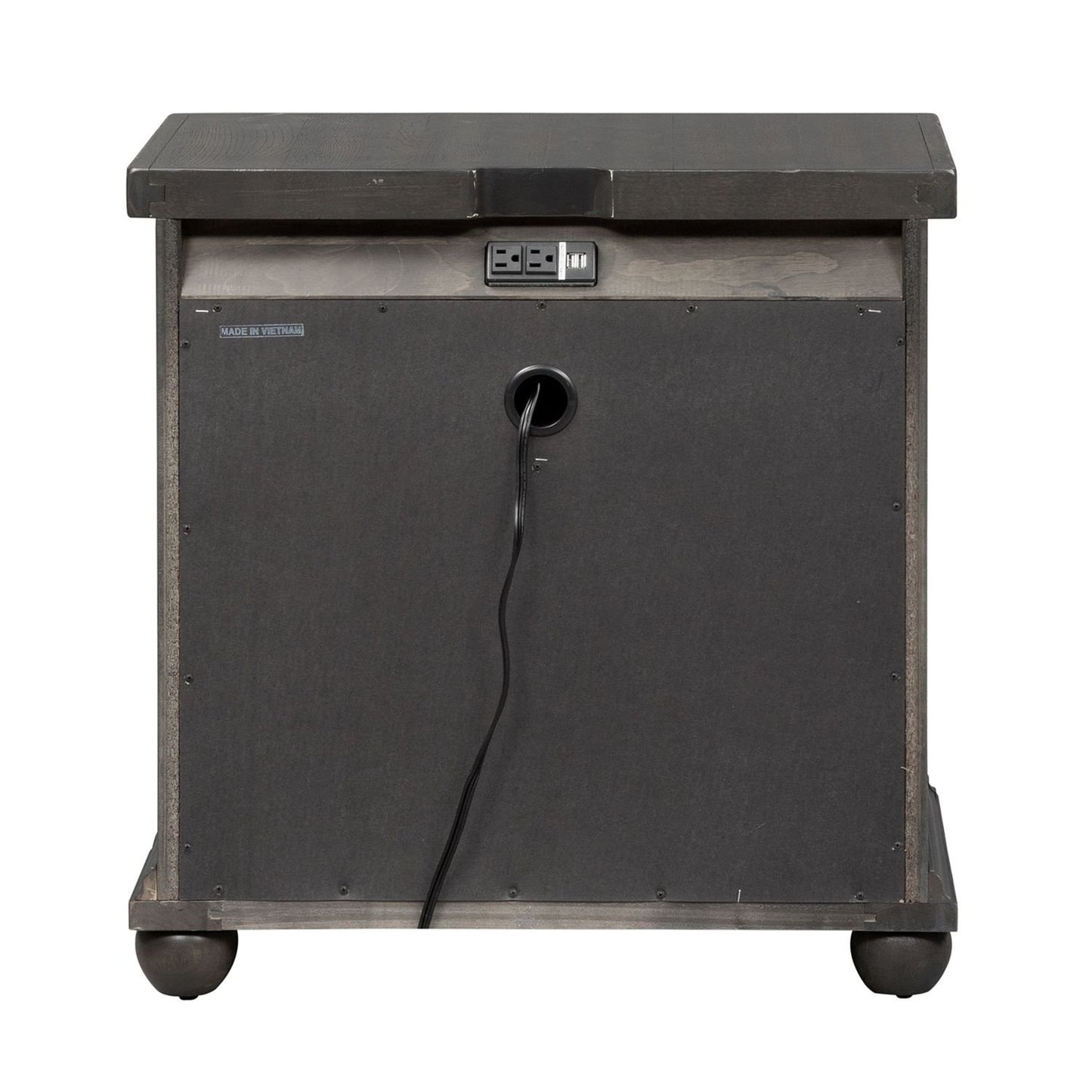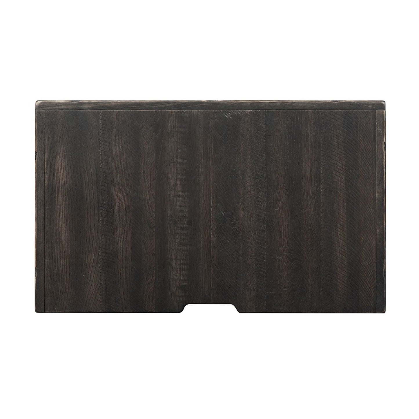 Constructed with rubberwood solids and knotty white oak veneers, this piece features a unique chalkboard finish, cedar lined bottom drawer, fully stained interior drawers, and bottom case dustproofing, all accented by antique brass bar pull and knob hardware. With today's electronics in mind, this piece includes a 2-port charging station for user convenience, making multi device charging a breeze.