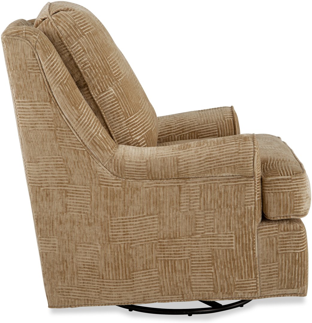 Beautifully casual and incredibly comfortable, this swivel glider from the Paula Deen Home collection has a sock arm and semi- attached knife edge back pillow to offer you a custom fit every time to you sit down. Paula's exlusive Down-Blend seat cushion gives this stylish piece a high level of plush comfort.