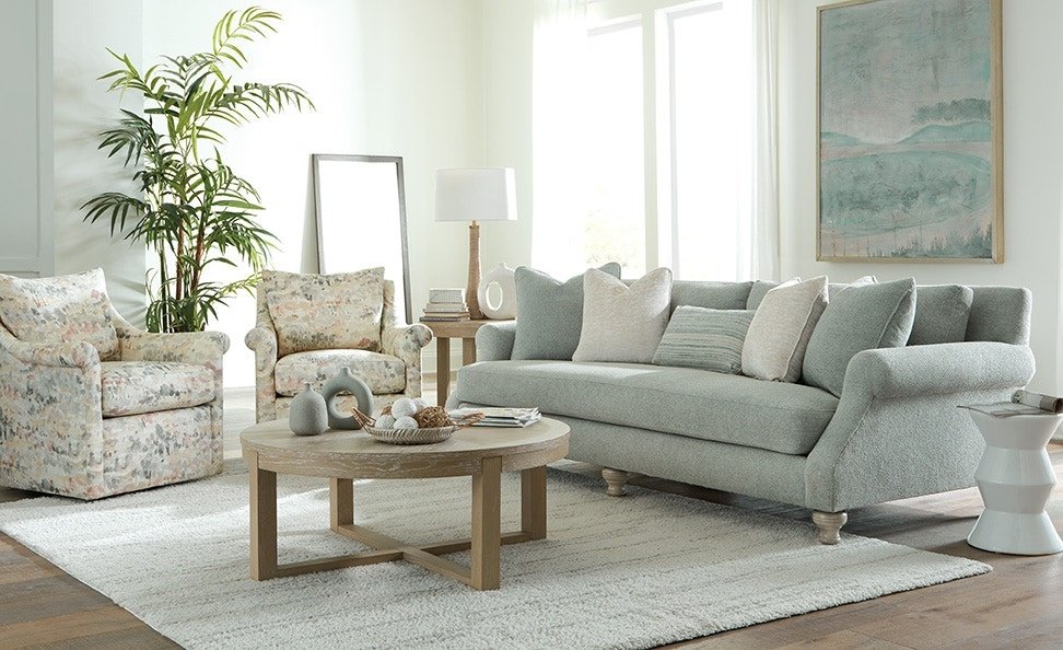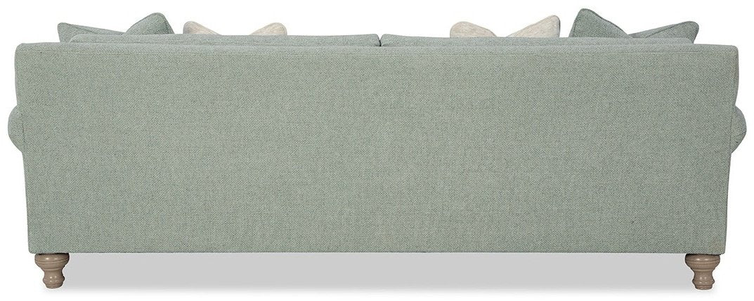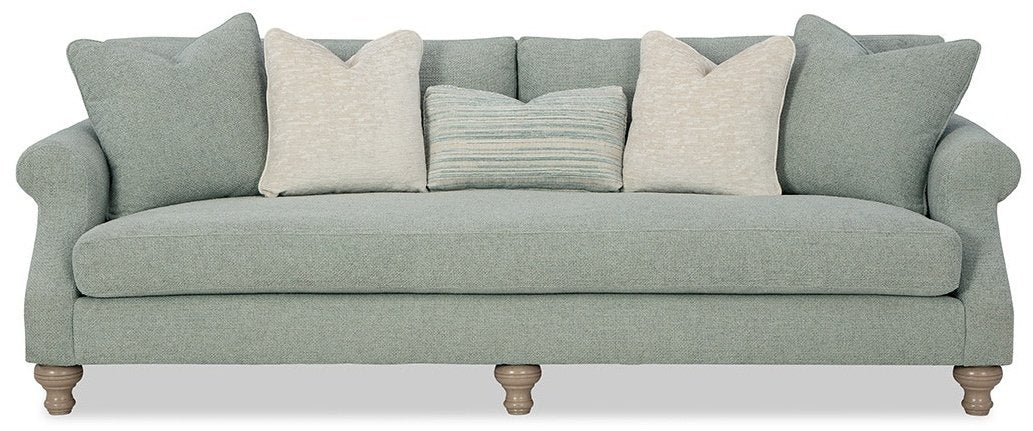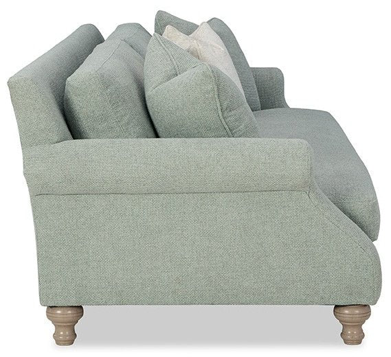 This sofa from the Paula Deen collection embodies the highest level of softness, comfort and luxury. Featuring deep seating, scattered Blend Down toss pillows and a bench-seat Blend Down cushion, this piece allows you to be enveloped in pure coziness. French seaming overall, turned legs and cut back roll arms complete the look. Also available are the matching loveseat, chair 1/2 and ottoman.