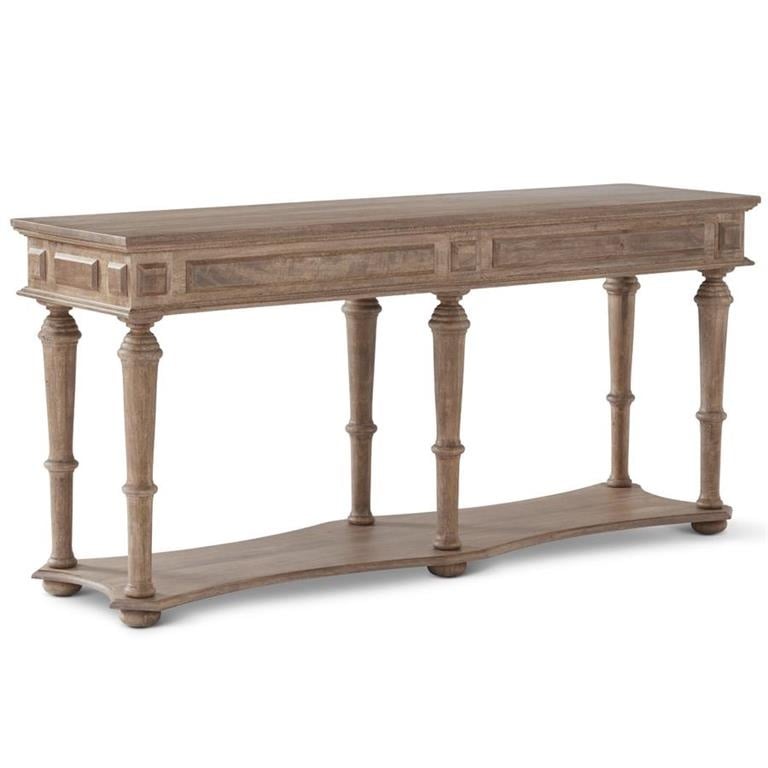 Washed Mango Wood Console Table w/Bottom Shelf & 6 Legs