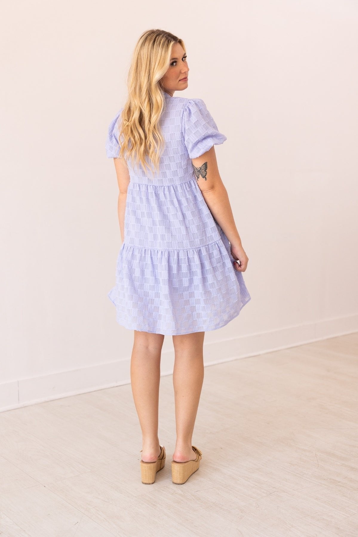 This V-neck checkered dress features a fresh and stylish design, perfect for any occasion. It is lined for added comfort and structure, with no stretch for a tailored fit.