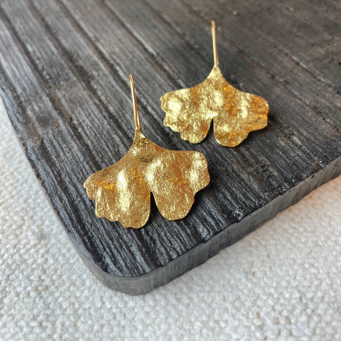 These stunning, textured, ginkgo leaf earrings will complete your timeless look. These lightweight, feminine earrings will quickly become your new favorite.