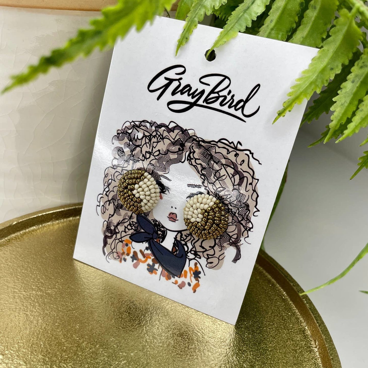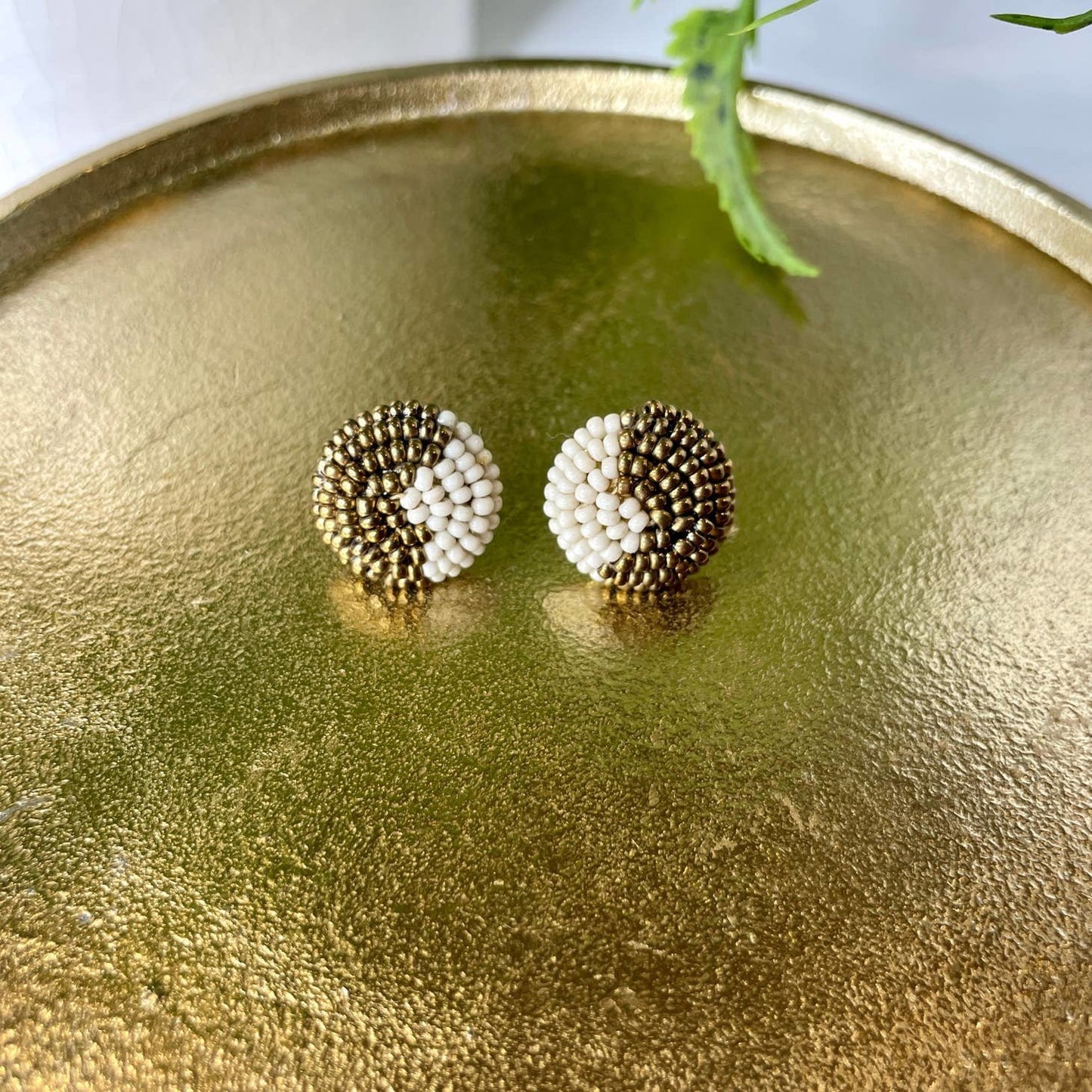 Hazel Gold & Ivory Handmade Seed Bead Studs