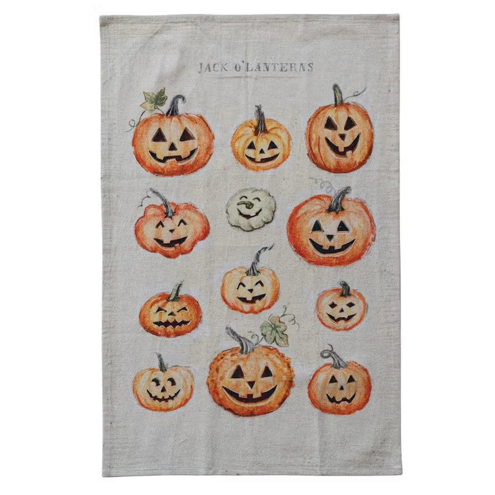 Cotton & Linen Jack-O-Lanterns Printed Tea Towels