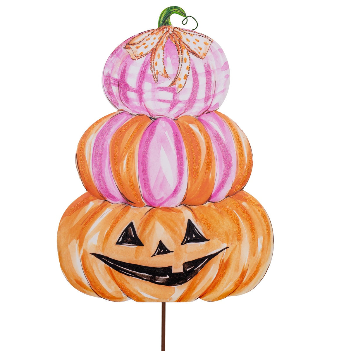 Add a splash of whimsy to your decor with the Large Pink Pumpkin Stack. Made of sturdy metal, this charming piece brings a playful pop of color and festive flair to any space, perfect for celebrating the season with style.