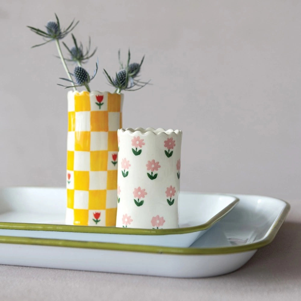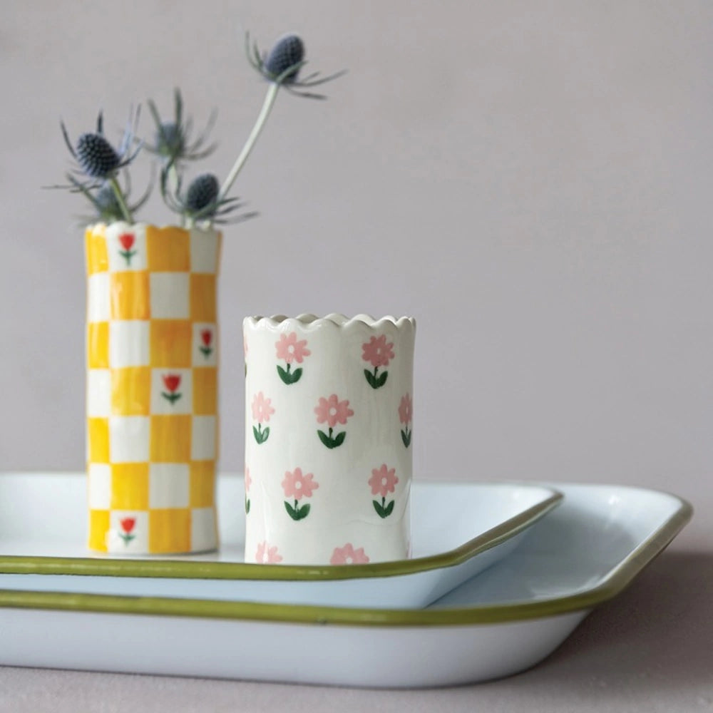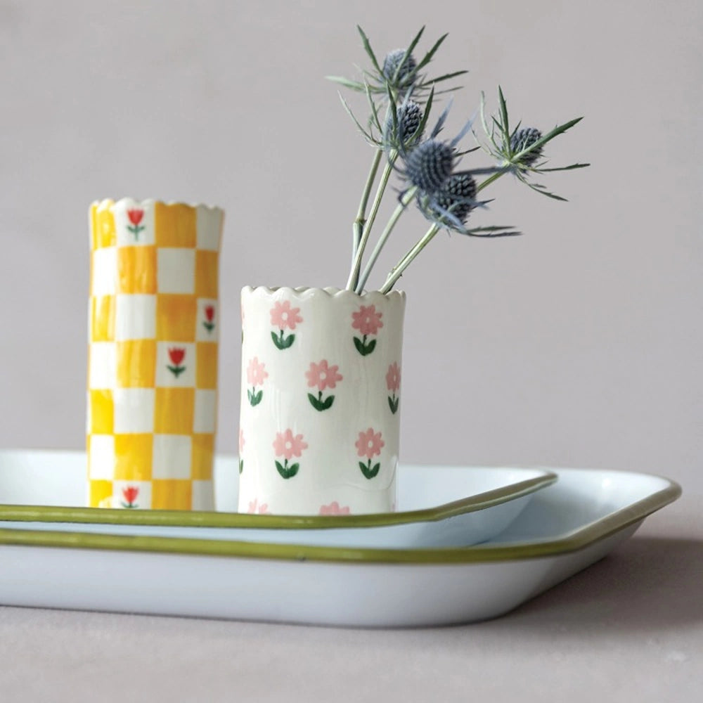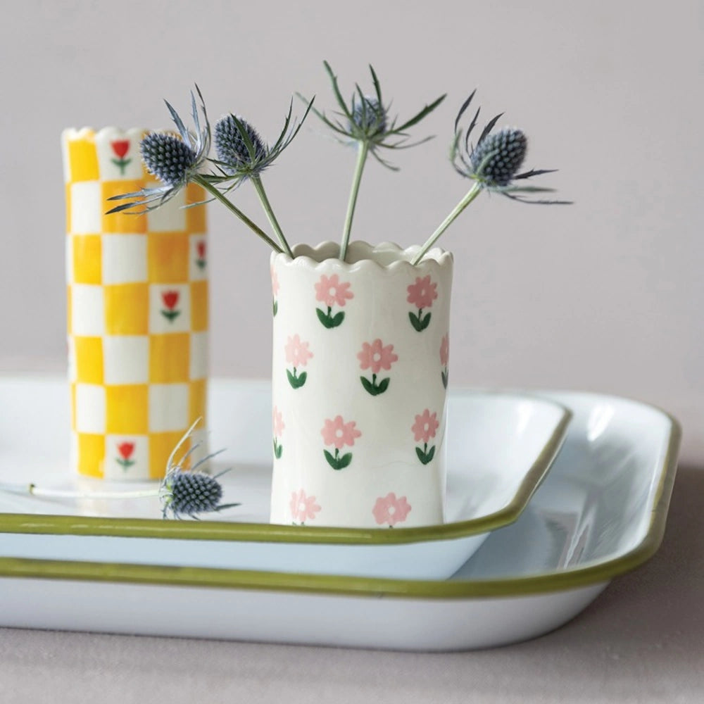 Crafted from durable stoneware, this vase features a charming scalloped edge and a timeless design that complements both modern and rustic interiors.