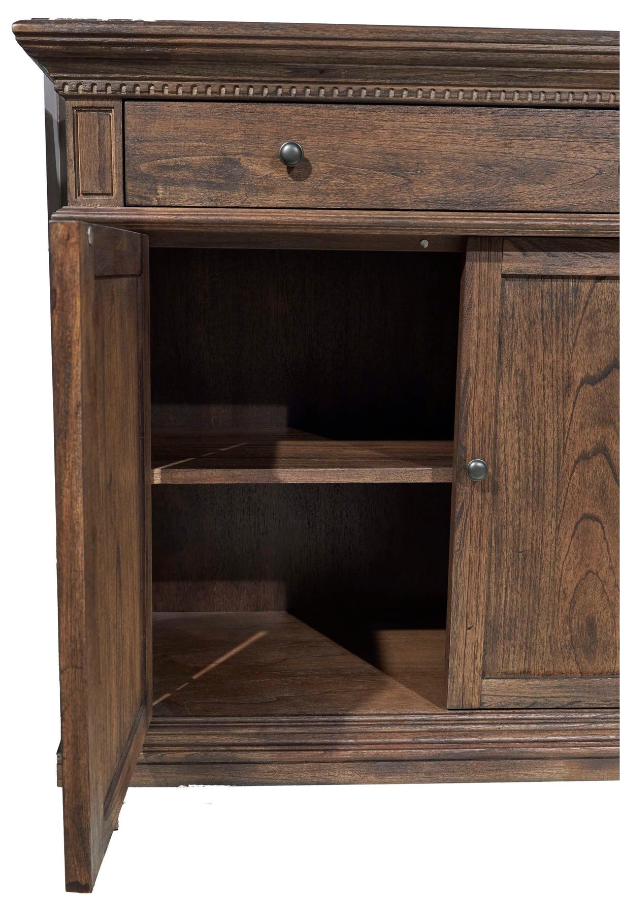 Cantilevered top drawers with corbel support and flat posts.