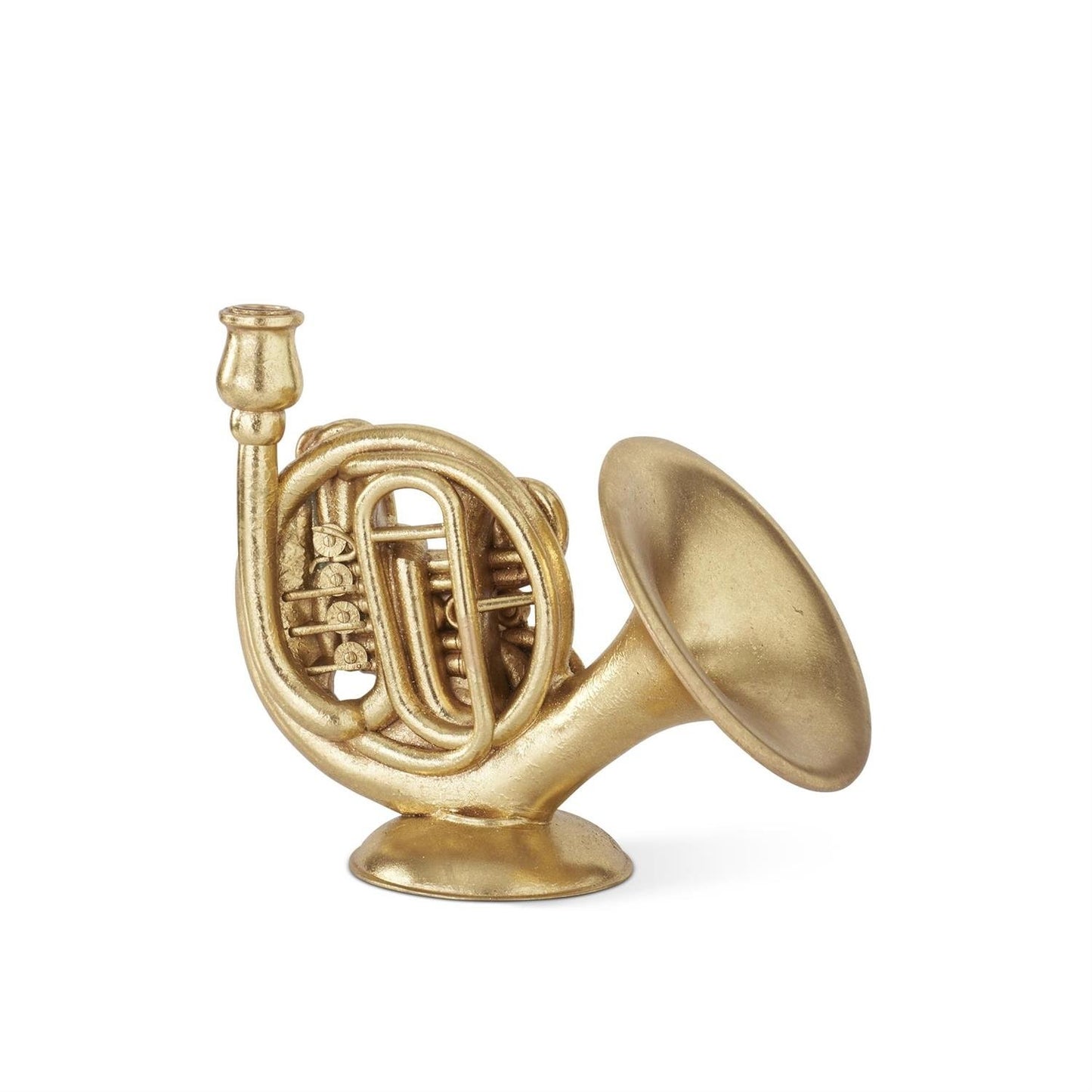 The French Horn Taper Candleholder is a stunning accent piece that adds elegance and glamour to any setting. This candleholder features a unique trumpet shape, beautifully finished with a gold foil that catches the light and adds a touch of opulence.