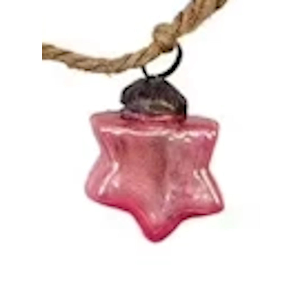 Crafted from eco-friendly recycled glass, this ornament features an elegant embossed pattern and a soft pink hue that radiates vintage charm.