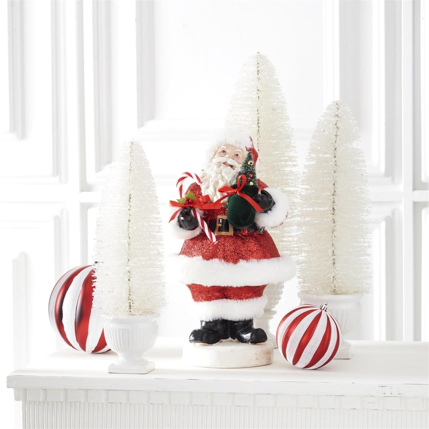 Add Vintage Santa With Red Glittered Coat Holding Candy Cane to the cart