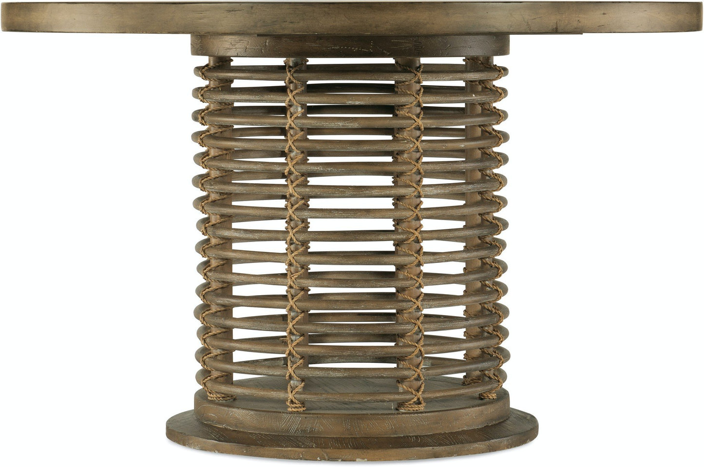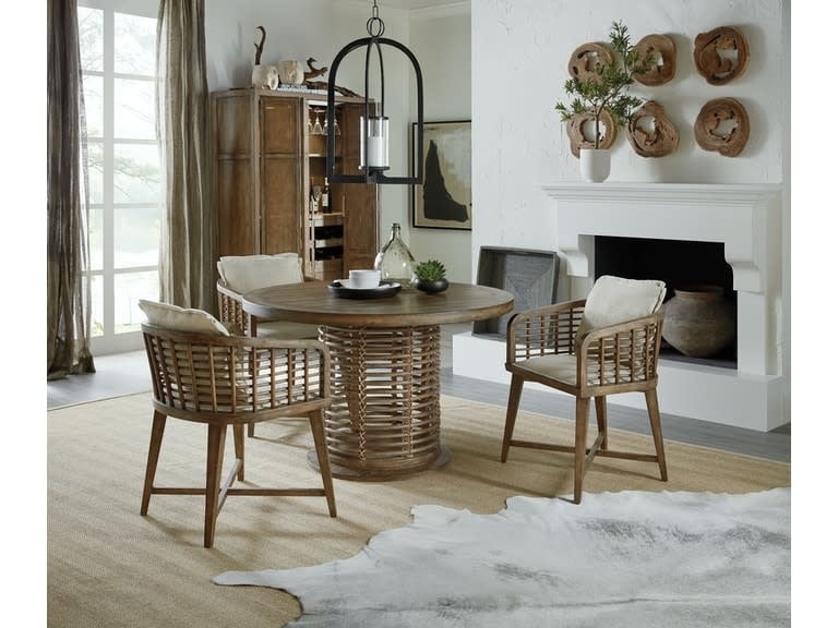 A marvel of craftsmanship, the Sundance table combines natural materials of cane, rope and Pecan Veneers with a solid wood edge top and hand-tied jute rope on the table base. With a modern mountain aesthetic, the Sundance dining table includes the base and top and features the rich, dynamic brown Cliffside finish with light burnishing on the edges and distressing. Calling on inspiration from the iconic Pacific Coast Highway and the picturesque Malibu landscape, Sundance presents a clearly California casual aesthetic. Featured in Cliffside, a rich, dynamic brown finish with light burnishing on the edges, the collection combines a variety of natural materials including rattan, jute rope, stone, gypsum, bamboo and driftwood motifs to present a sophisticated style that can instantly create a calming resort-inspired retreat in your very own home.