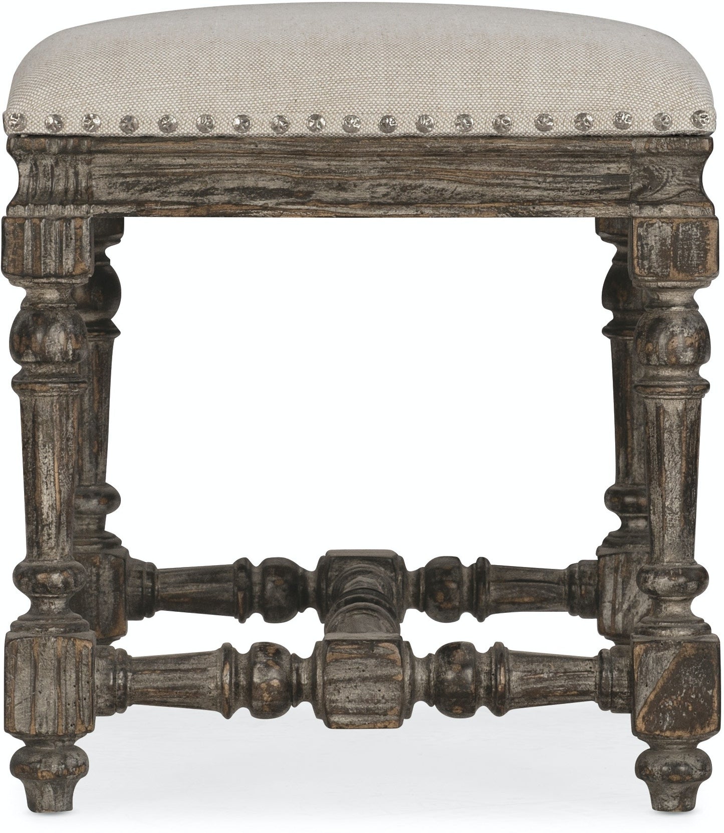 Finished in the elegant brown Maduro finish with grey undertones, the seat is upholstered in Biscuit, a 100% Linen performance fabric from stain resistance and easy cleaning. Inspired by a two-week trip through Europe in search of architecture and antiques full of vintage character, Hooker Furniture introduces the Traditions Collection. Targeting a design-oriented consumer with a sophisticated style, the whole home collection – one of the largest in company history – uses familiar forms to present a nostalgic, yet comfortable aesthetic. Layered with fresh elements, the group offers an updated presentation that speaks to a storied past, yet easily transitions into today’s interiors.