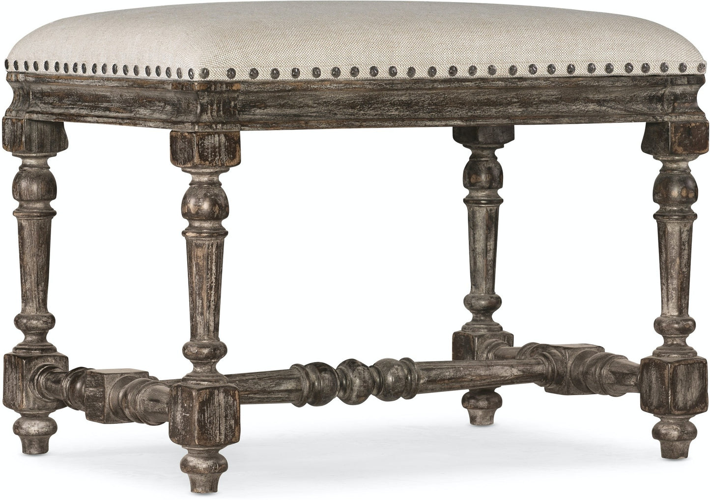 Inspired by European antiques and architecture, the Traditions Bed Bench features intricate details like turned legs and stretchers and nailhead trim around the base of the seat.
