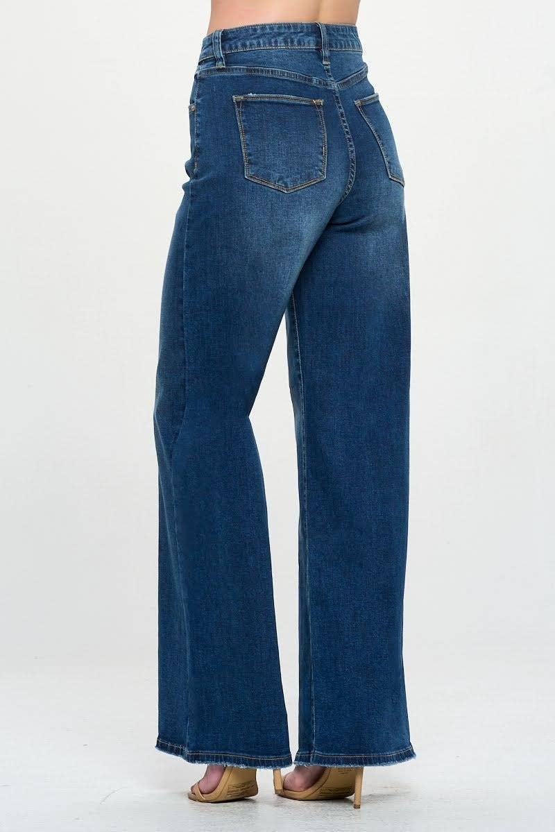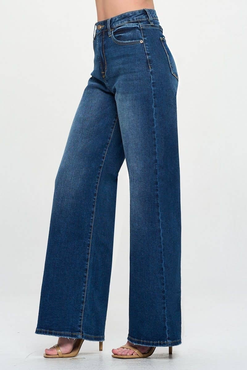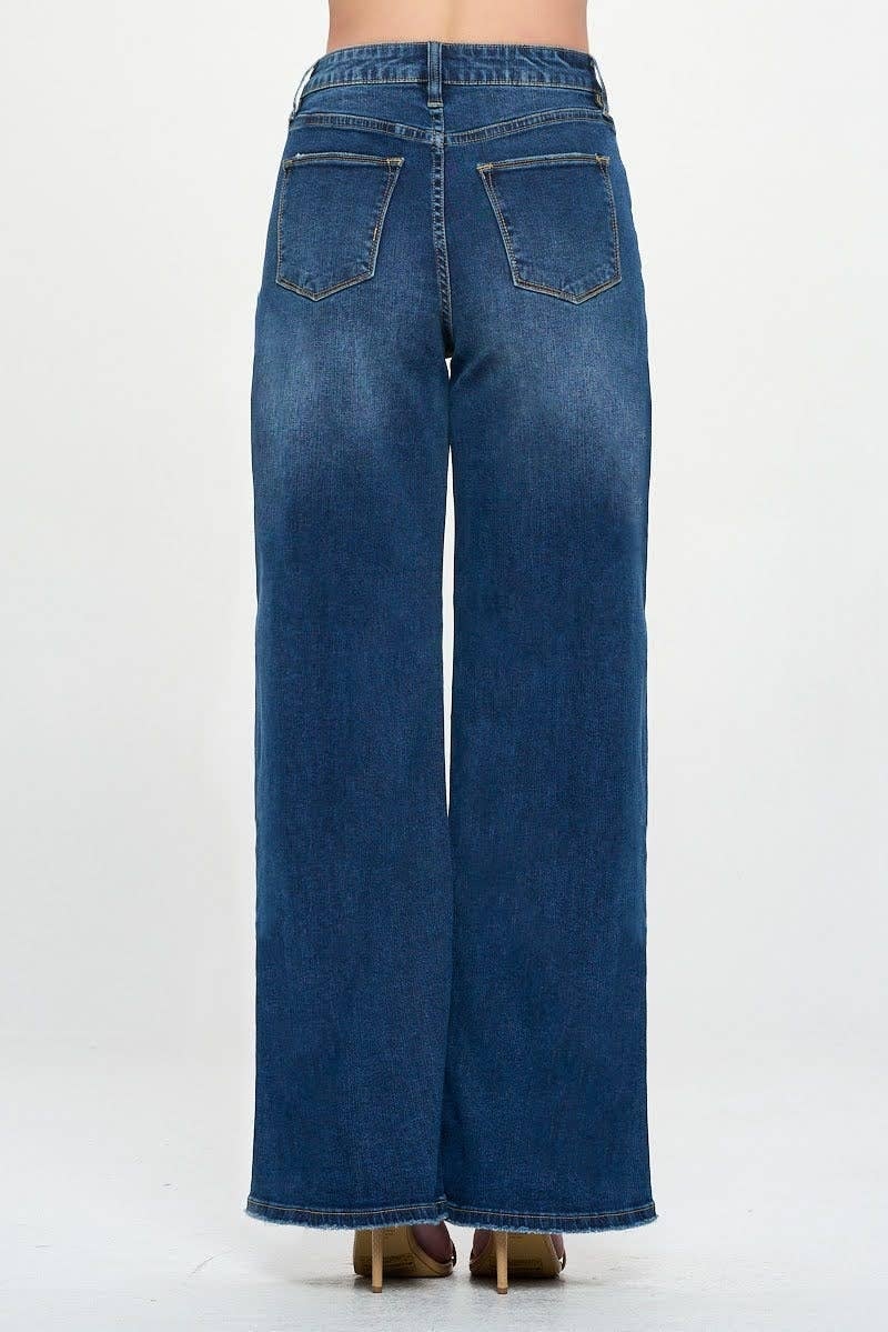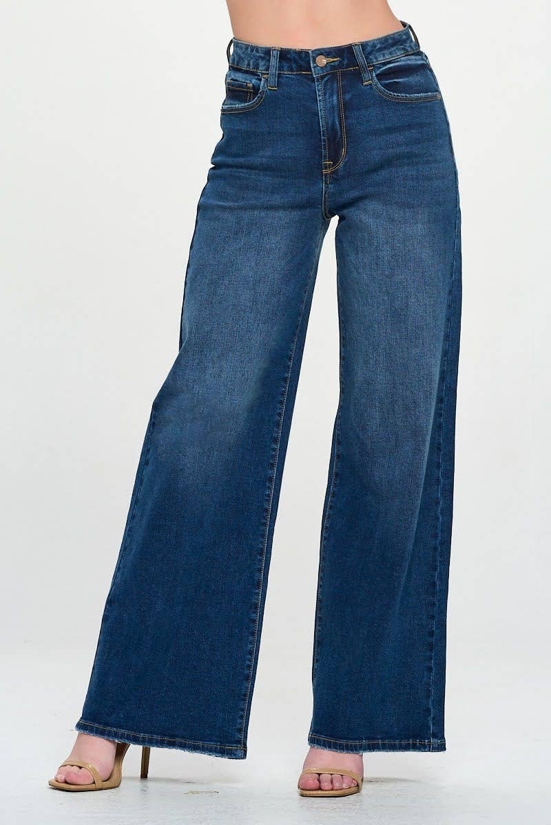 Dark Wash - High Rise Wide Leg Straight Fit Jeans
