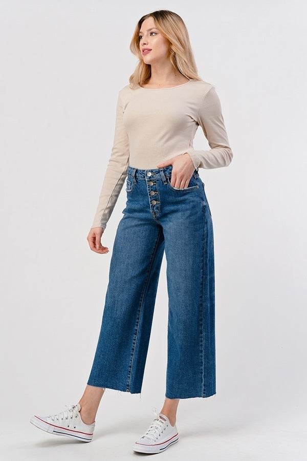 Elevate your style with these High Rise Wide Leg Jeans, designed to accentuate your waist and provide a flattering, comfortable fit. The wide leg silhouette adds a modern twist, offering effortless movement and a chic look that transitions seamlessly from day to night. Crafted to highlight your shape while delivering all-day comfort, these jeans are a versatile addition to any wardrobe. Perfect for making a statement while staying comfortable, they pair easily with your favorite tops and shoes for endless style possibilities.