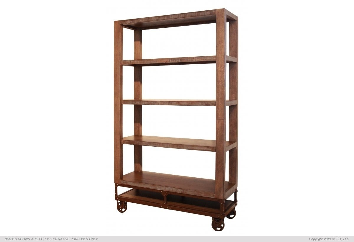 The bookcase is finished on both sides have functional casters are open on 4 sides