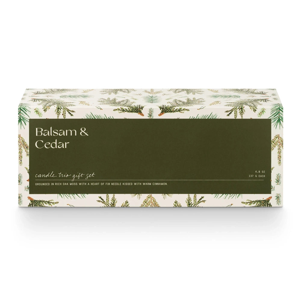Featuring three beautifully designed candles, this set fills any space with the fresh, woodsy scent of balsam and cedar, perfect for the holiday season or year-round enjoyment.