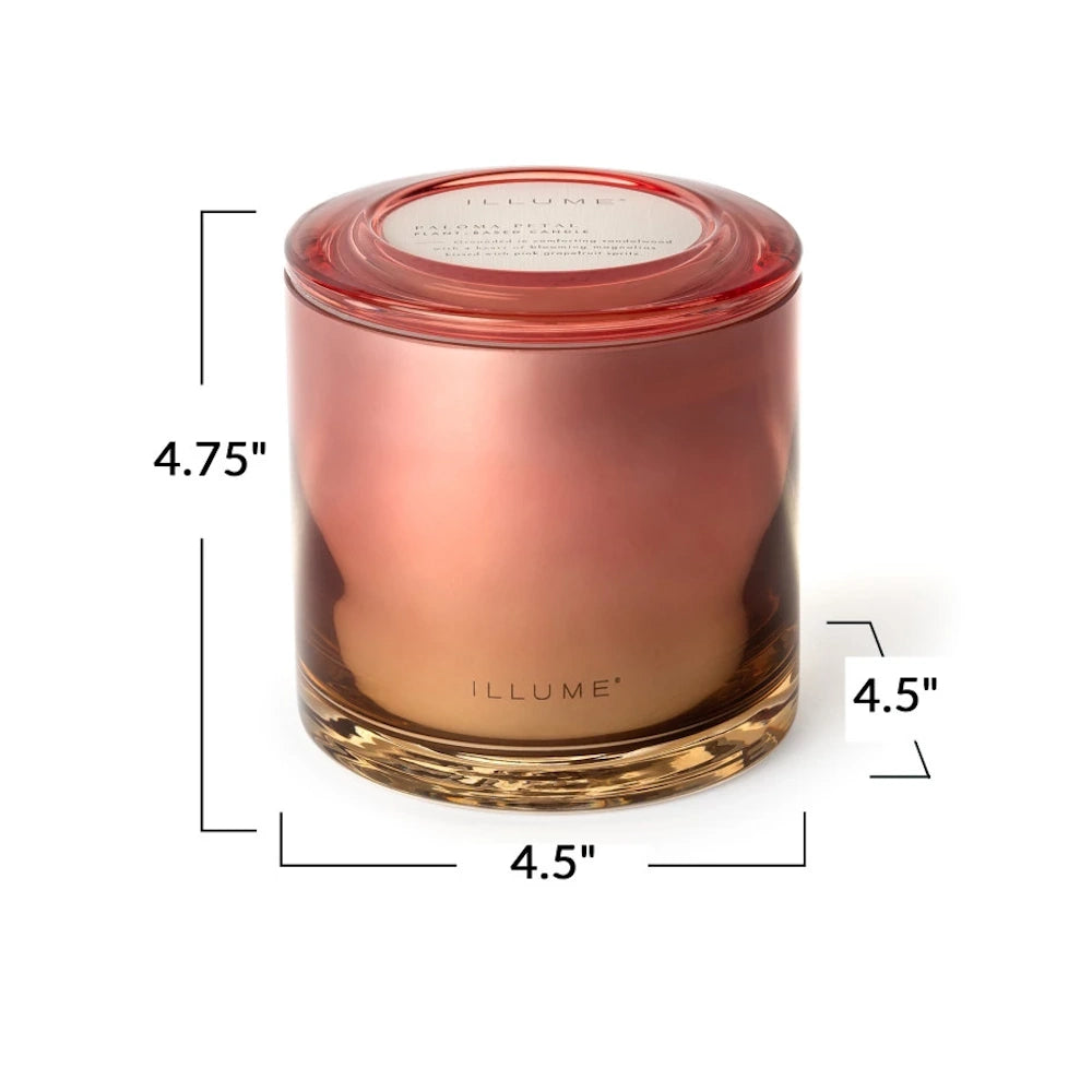 Designed as a centerpiece, the statement glass is a lidded, 3-wick, high shine beauty with a warm ombre glow that gets better with every burn.