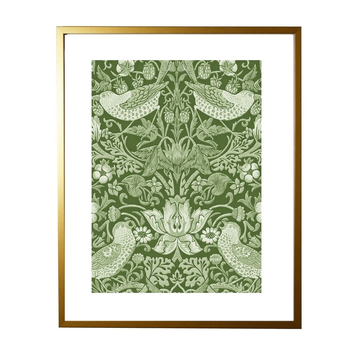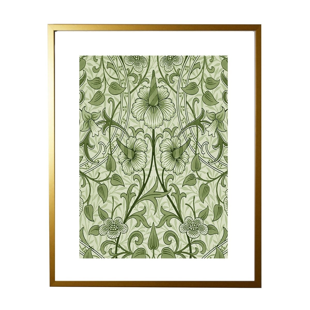 This elegant wall print features a soft botanical composition in varying shades of green and crisp white. Delicate white blooms are set against a backdrop of lush green foliage, creating a fresh, serene aesthetic.