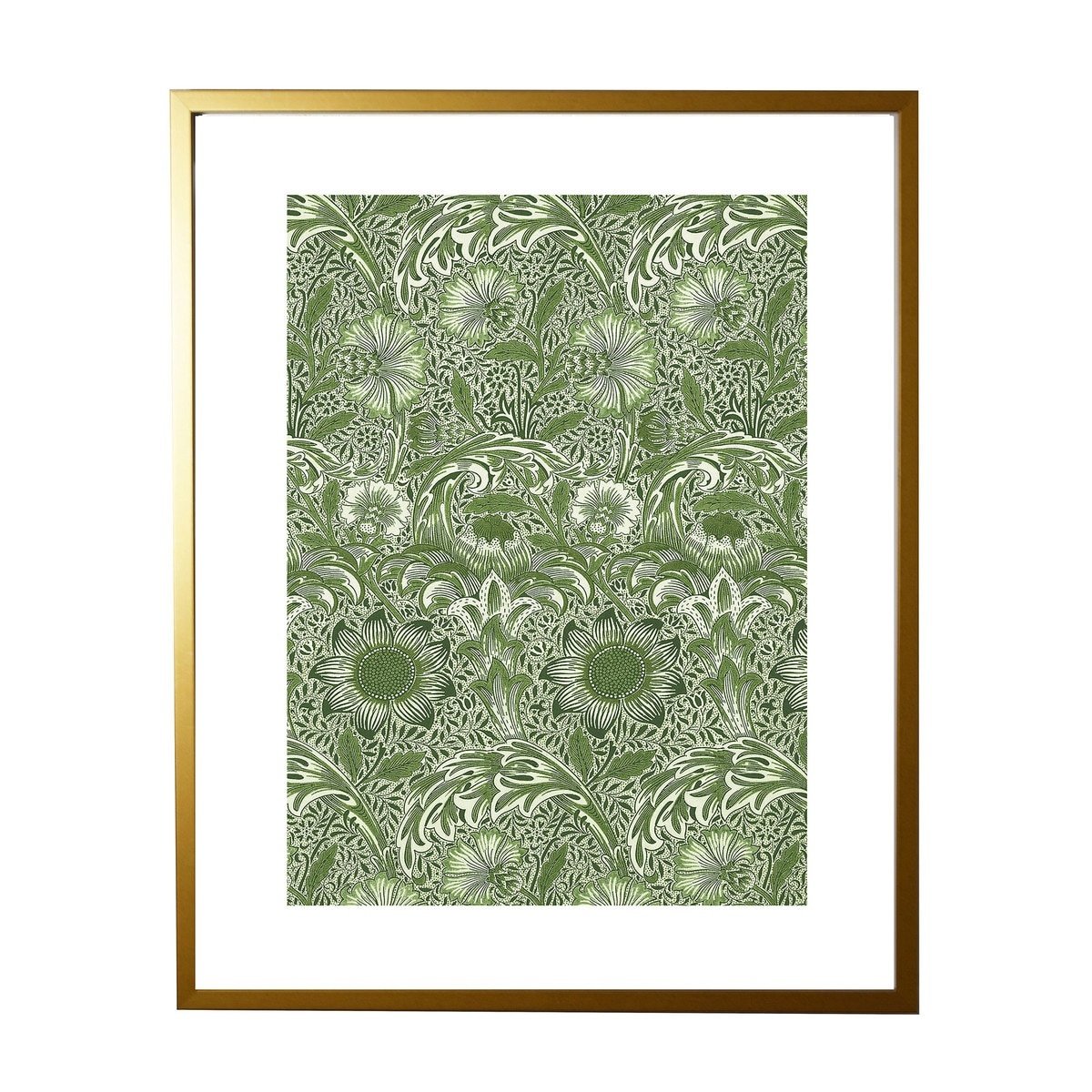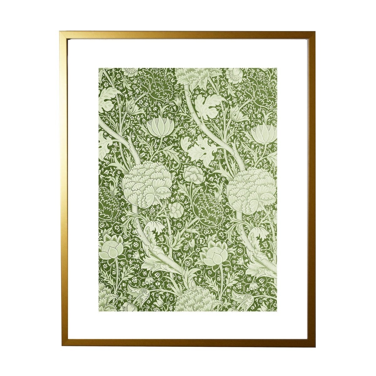 This elegant wall print features a soft botanical composition in varying shades of green and crisp white. Delicate white blooms are set against a backdrop of lush green foliage, creating a fresh, serene aesthetic.