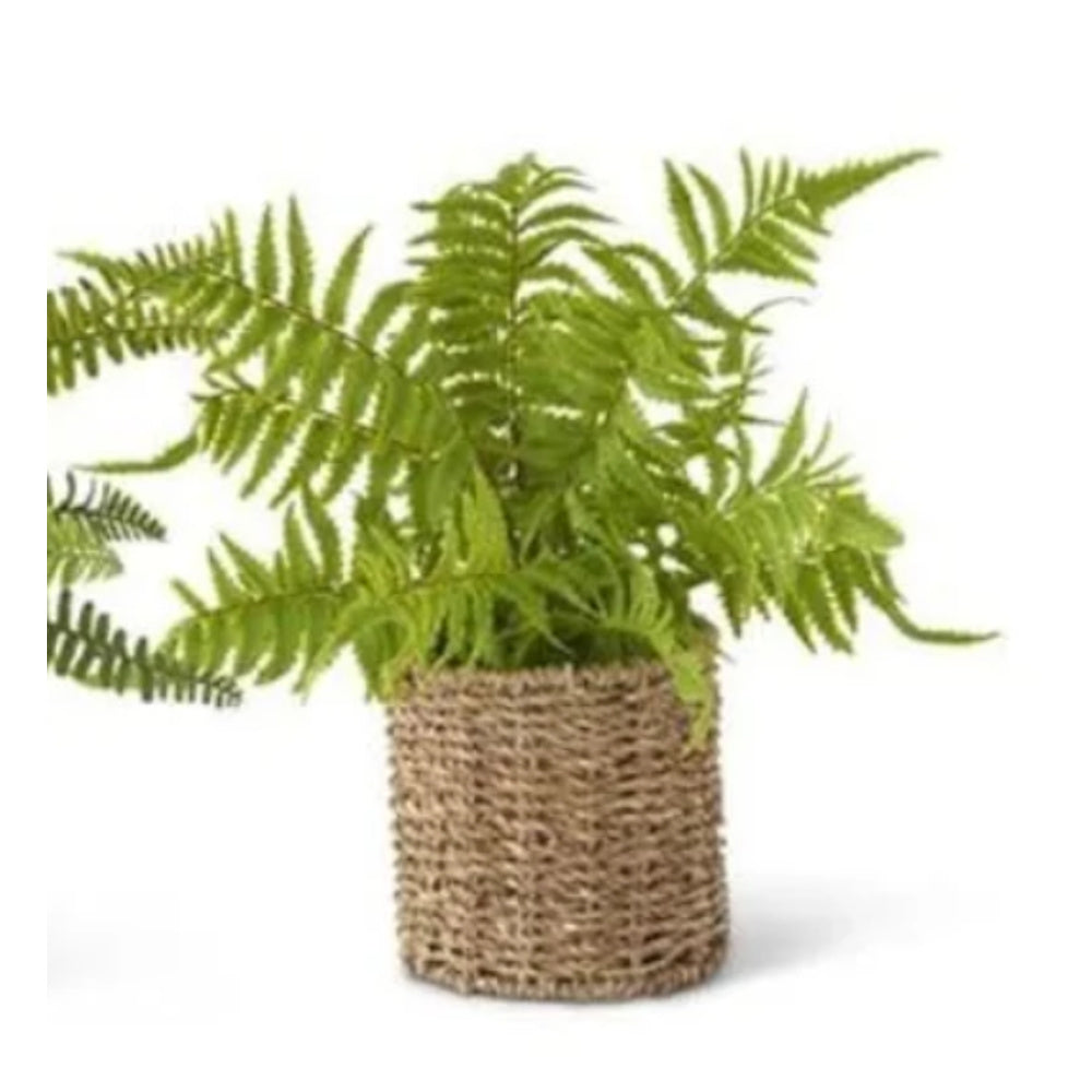 Bring the beauty of lush greenery into your home with the Assorted Ferns in Round Woven Basket by K&K Interiors. Featuring three lifelike fern styles, each arrangement is nestled in a charming woven basket for an effortless farmhouse-inspired look.