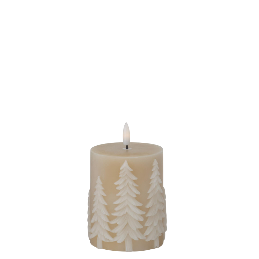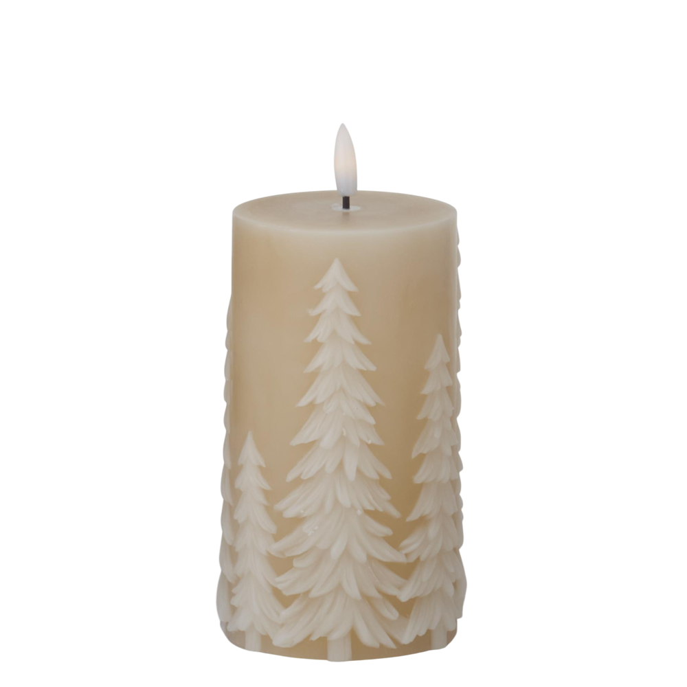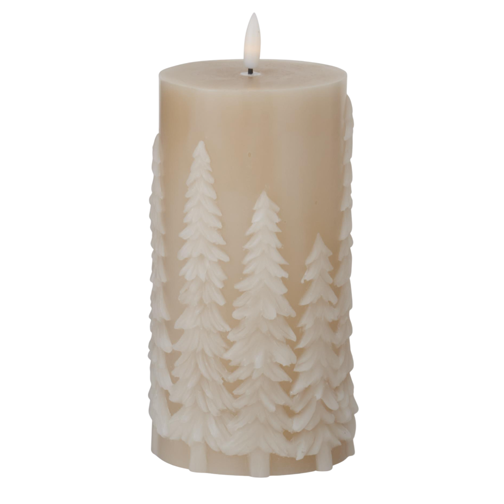 These elegant LED candles feature a natural tan finish with embossed tree designs, bringing rustic charm and cozy ambiance to your home. With built-in timers, they’re perfect for effortless decorating during the holidays or year-round. Enjoy the beauty of candlelight without the mess or worry of open flames.
