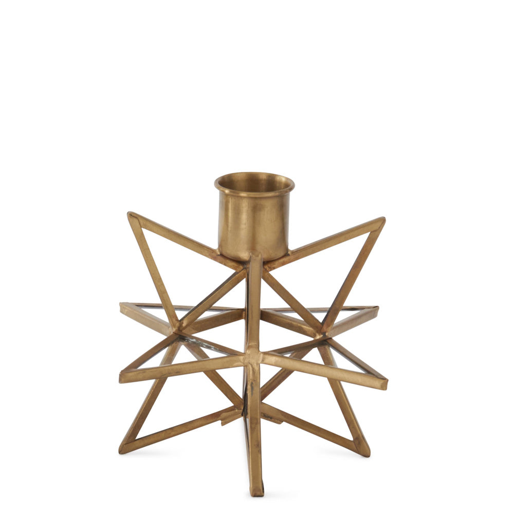3-Dimensional Gold Metal & Glass Star Taper Candleholder