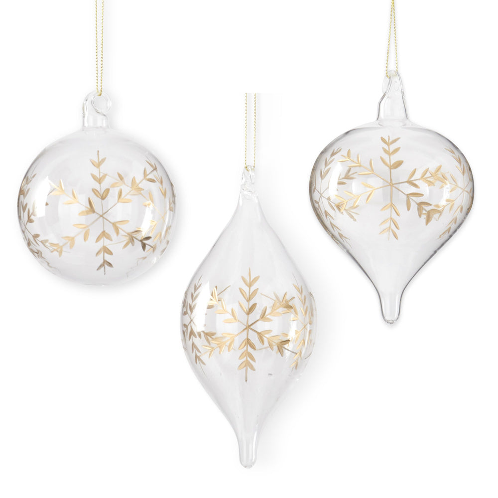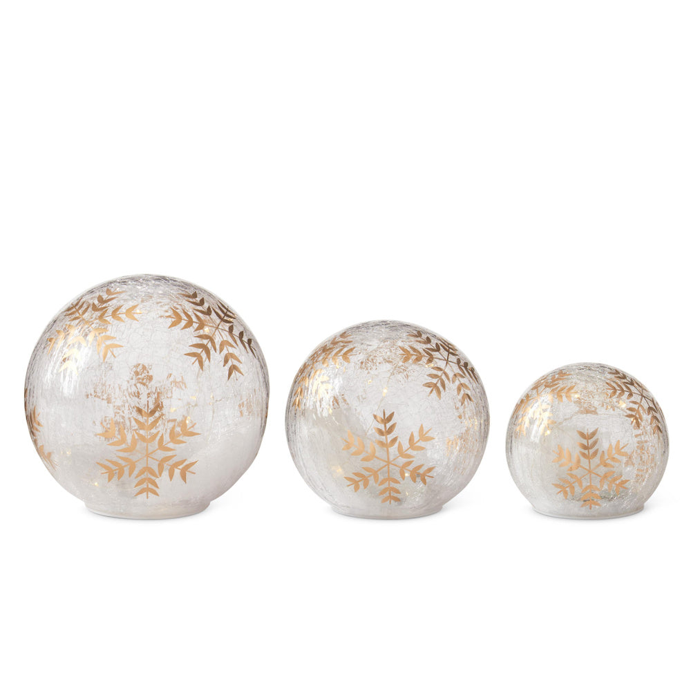 Gold Hand-Painted Snowflake LED Crackled Glass Globes